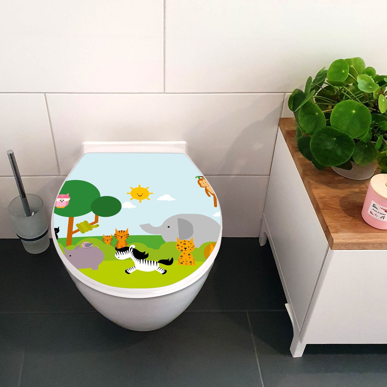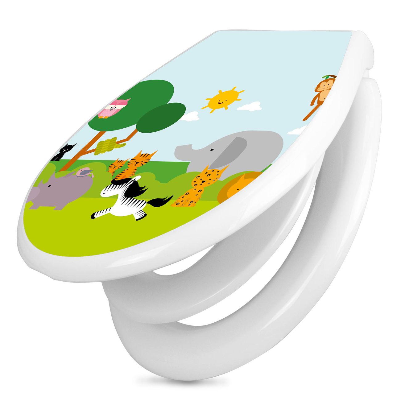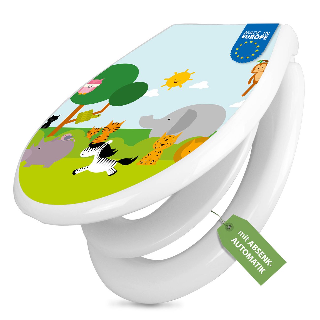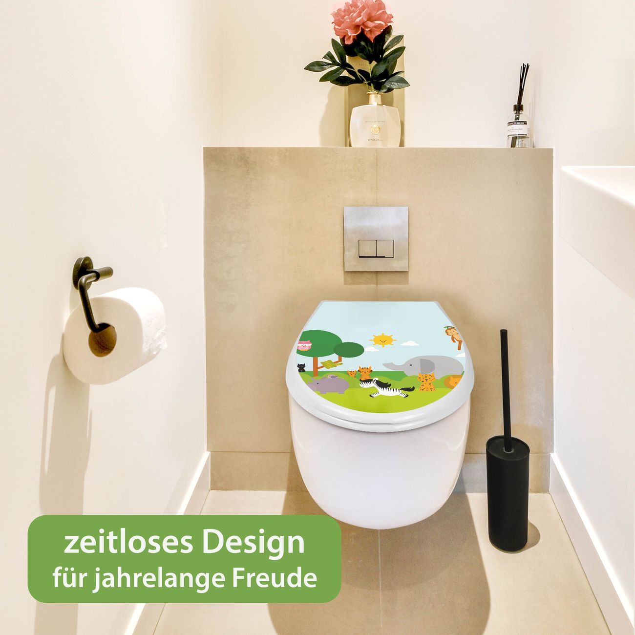 Toilettendeckel weiß mit Absenkautomatik Motiv Wilde Tiere