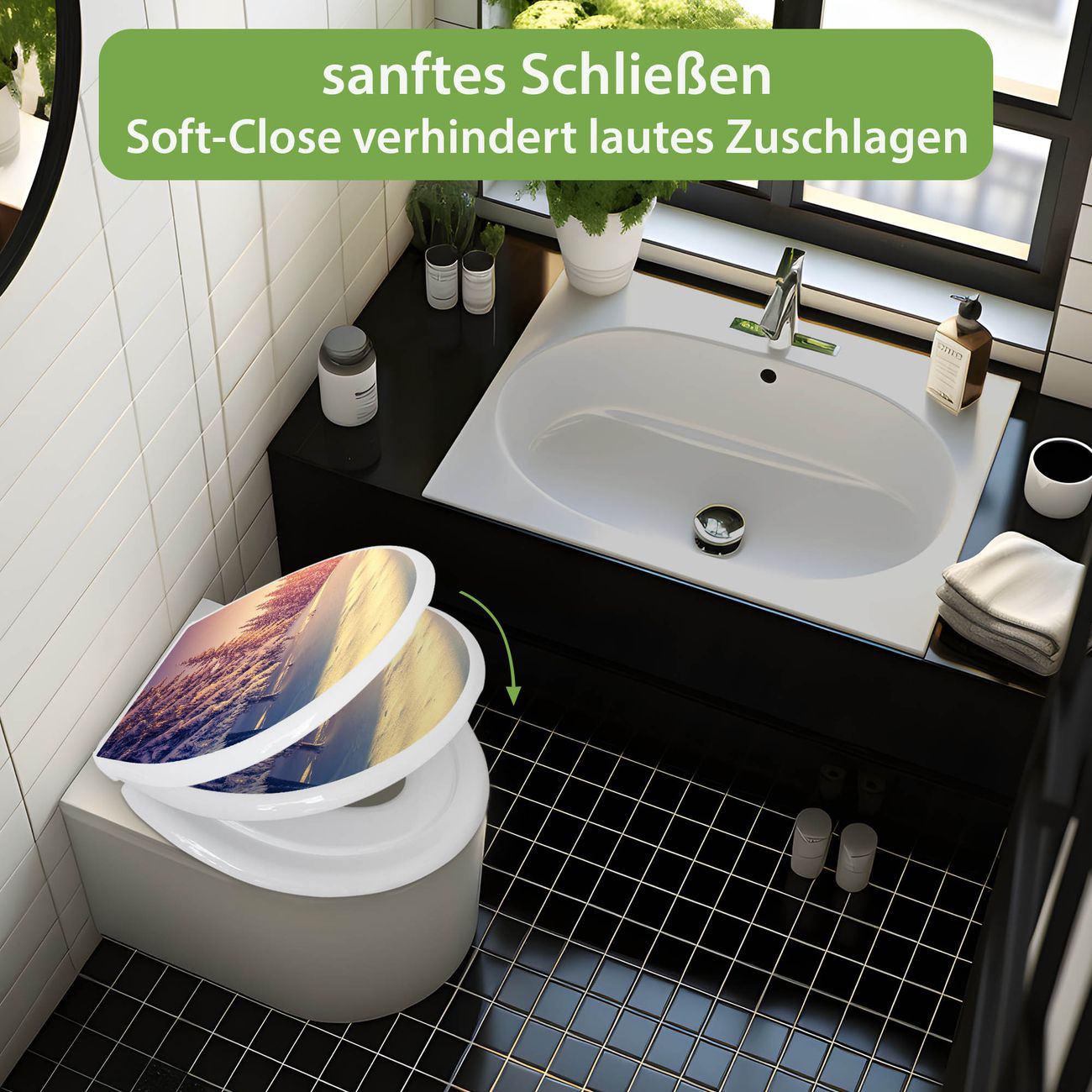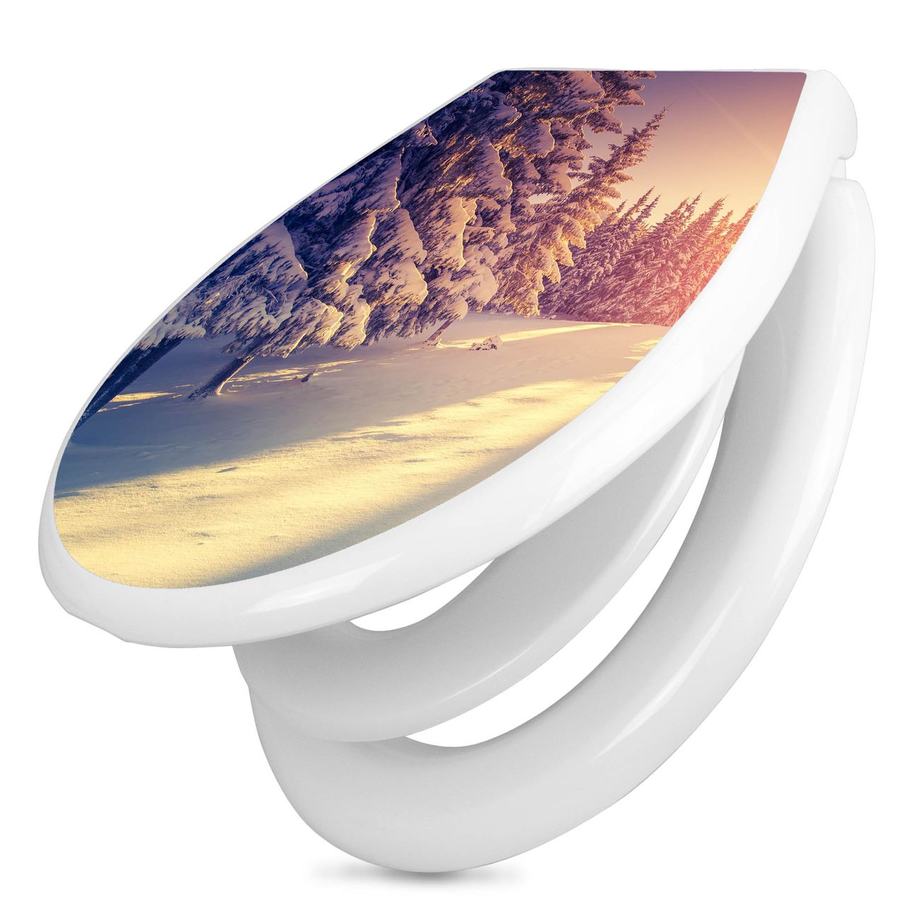 Toilettendeckel weiß mit Absenkautomatik Motiv Winterabend