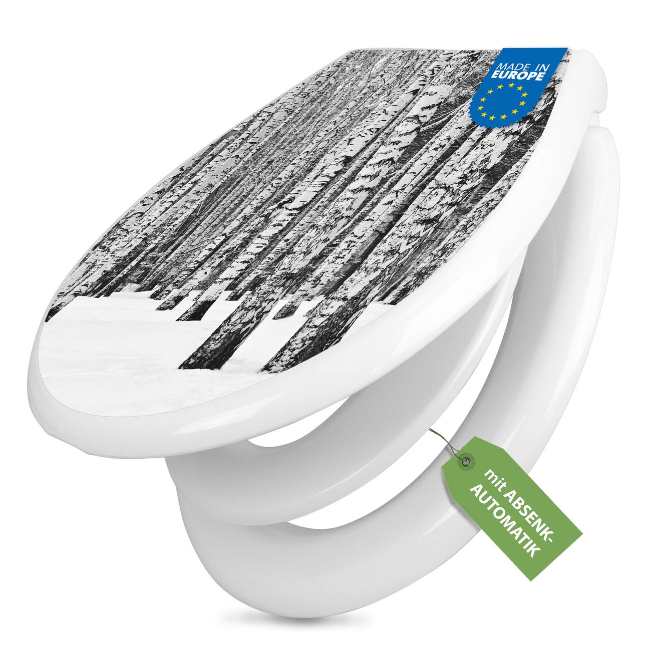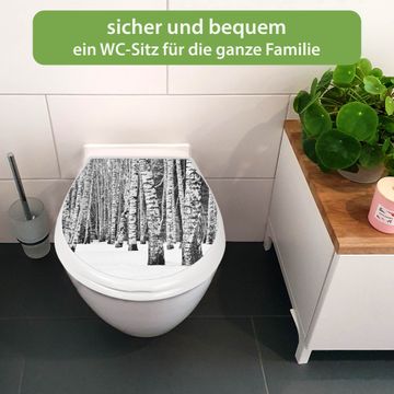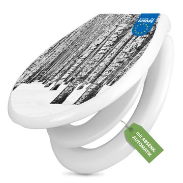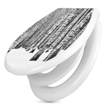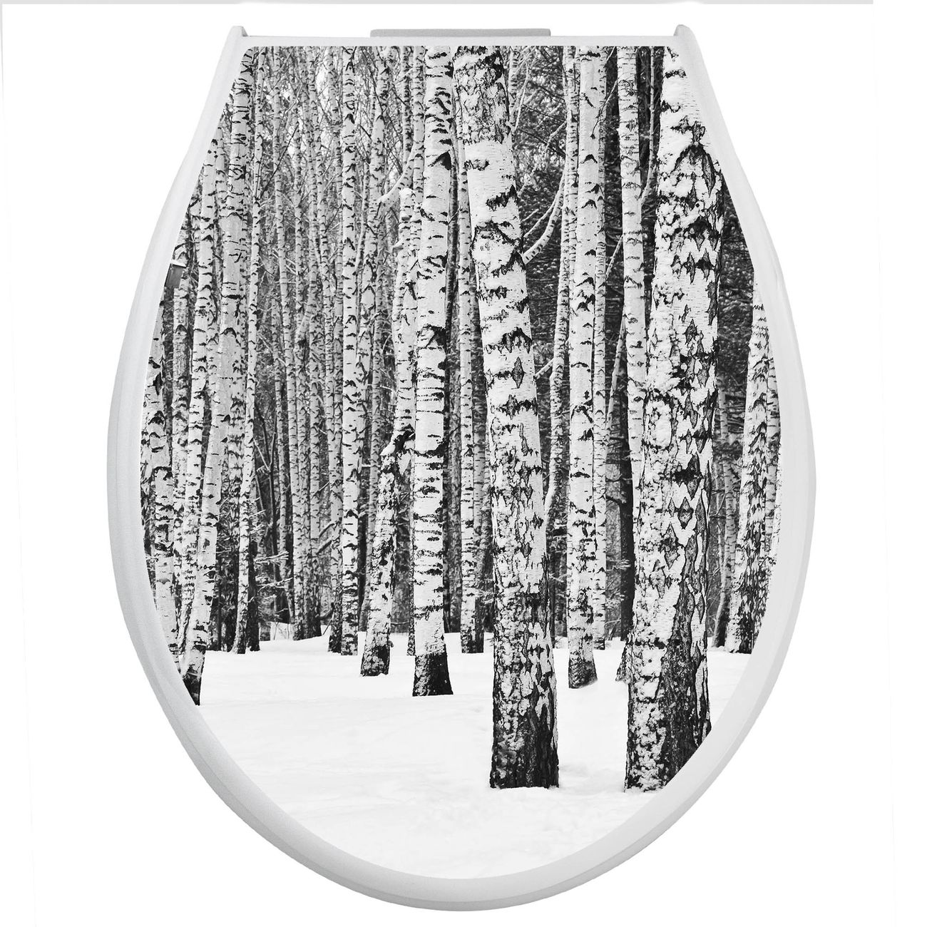 Toilettendeckel weiß mit Absenkautomatik Motiv Winterlicher Birkenwald