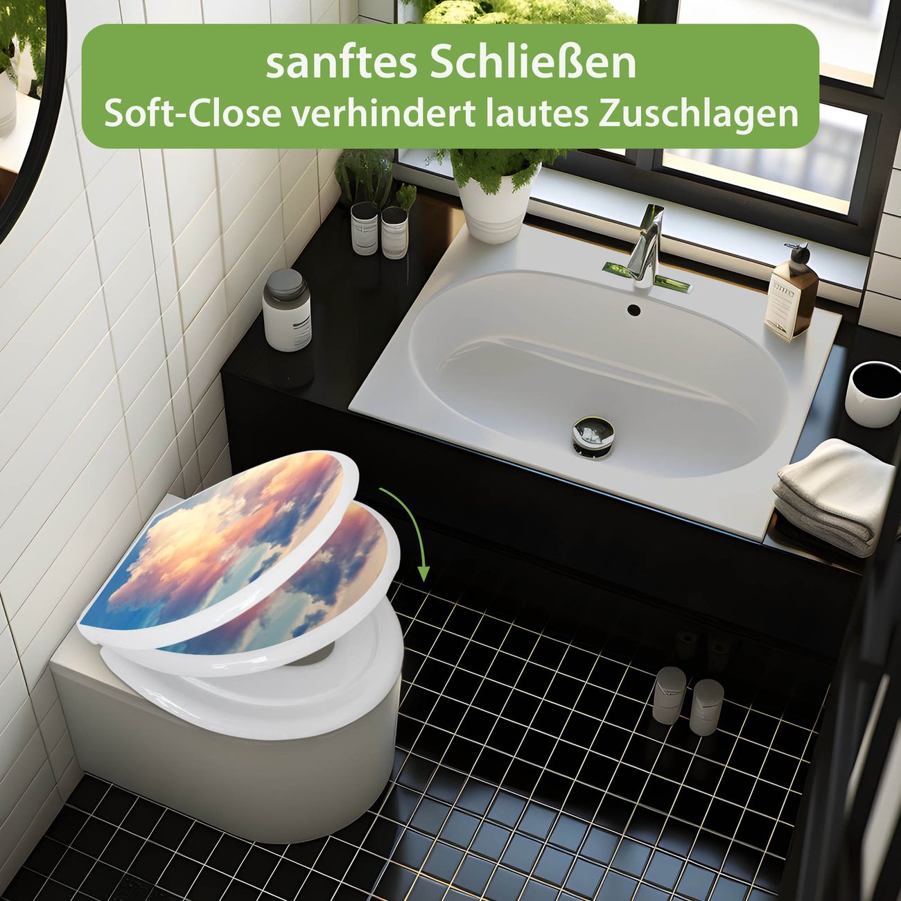 Toilettendeckel weiß mit Absenkautomatik Motiv Wolken 10