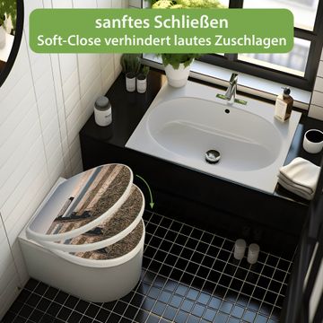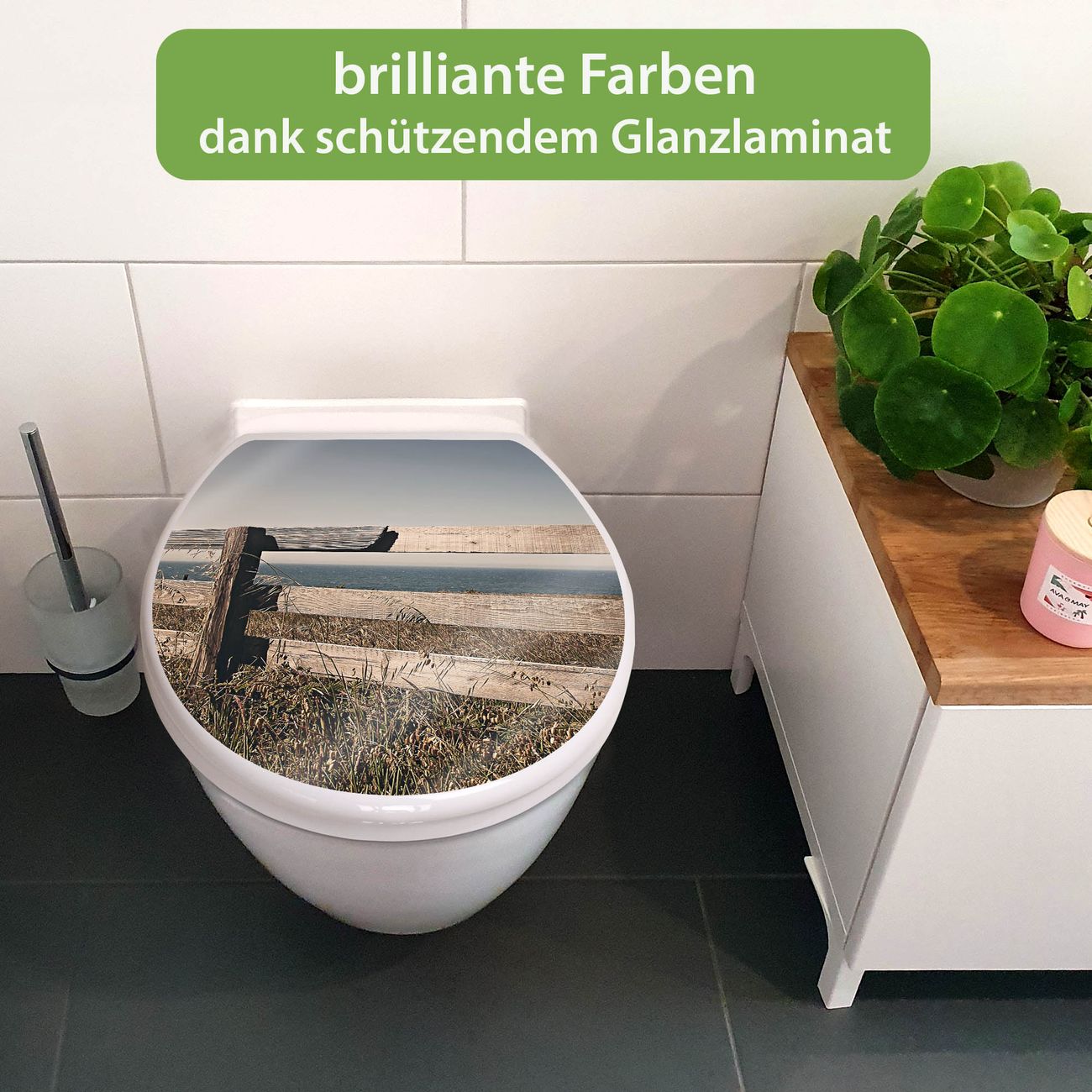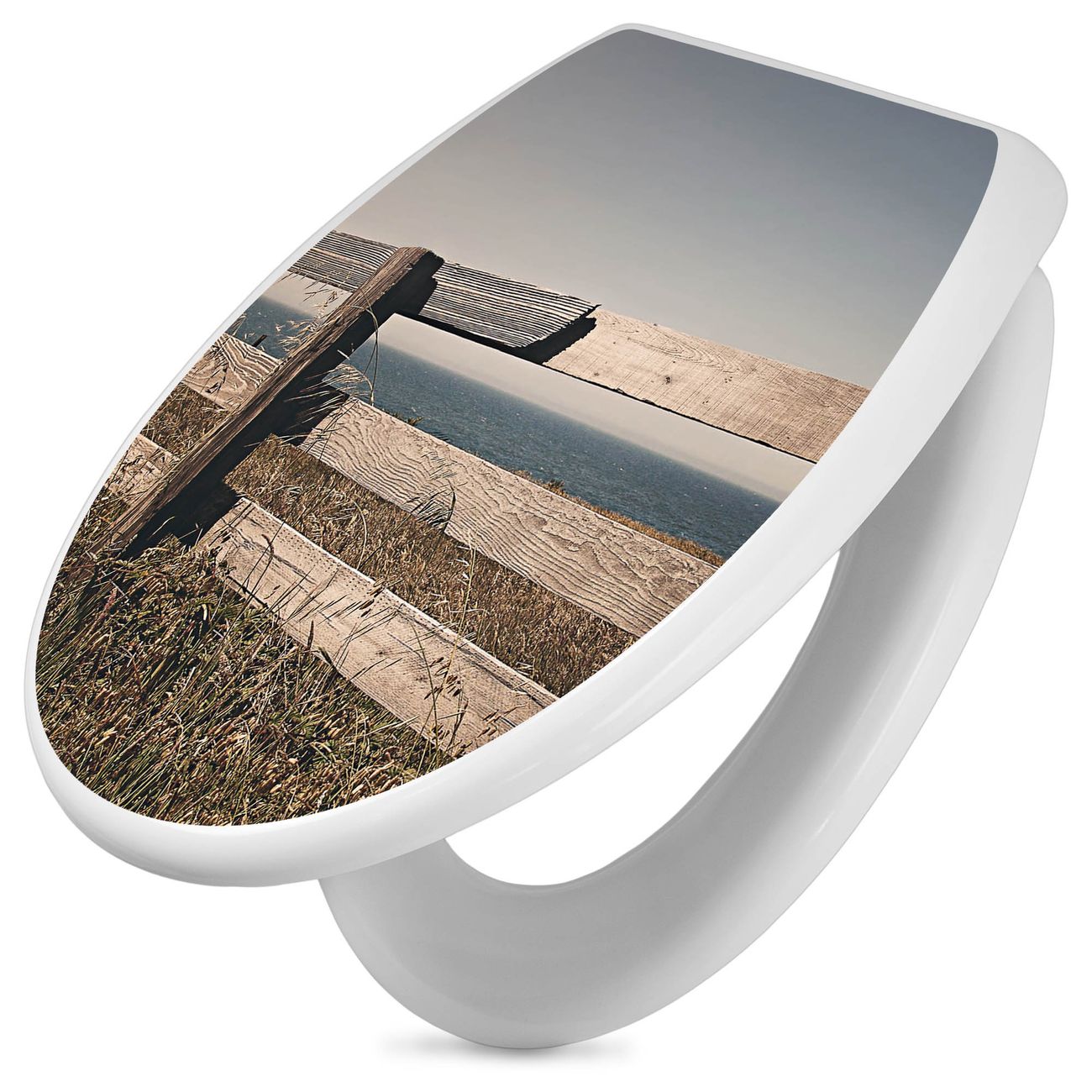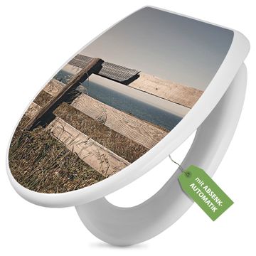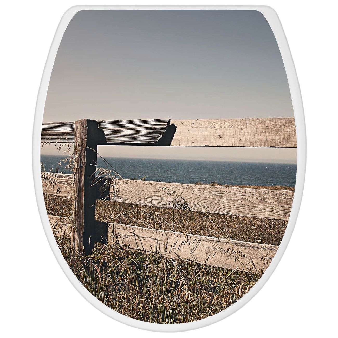 Toilettendeckel weiß mit Absenkautomatik Motiv Zaun am Meer