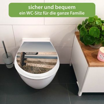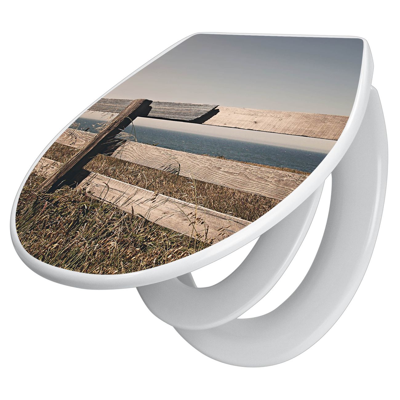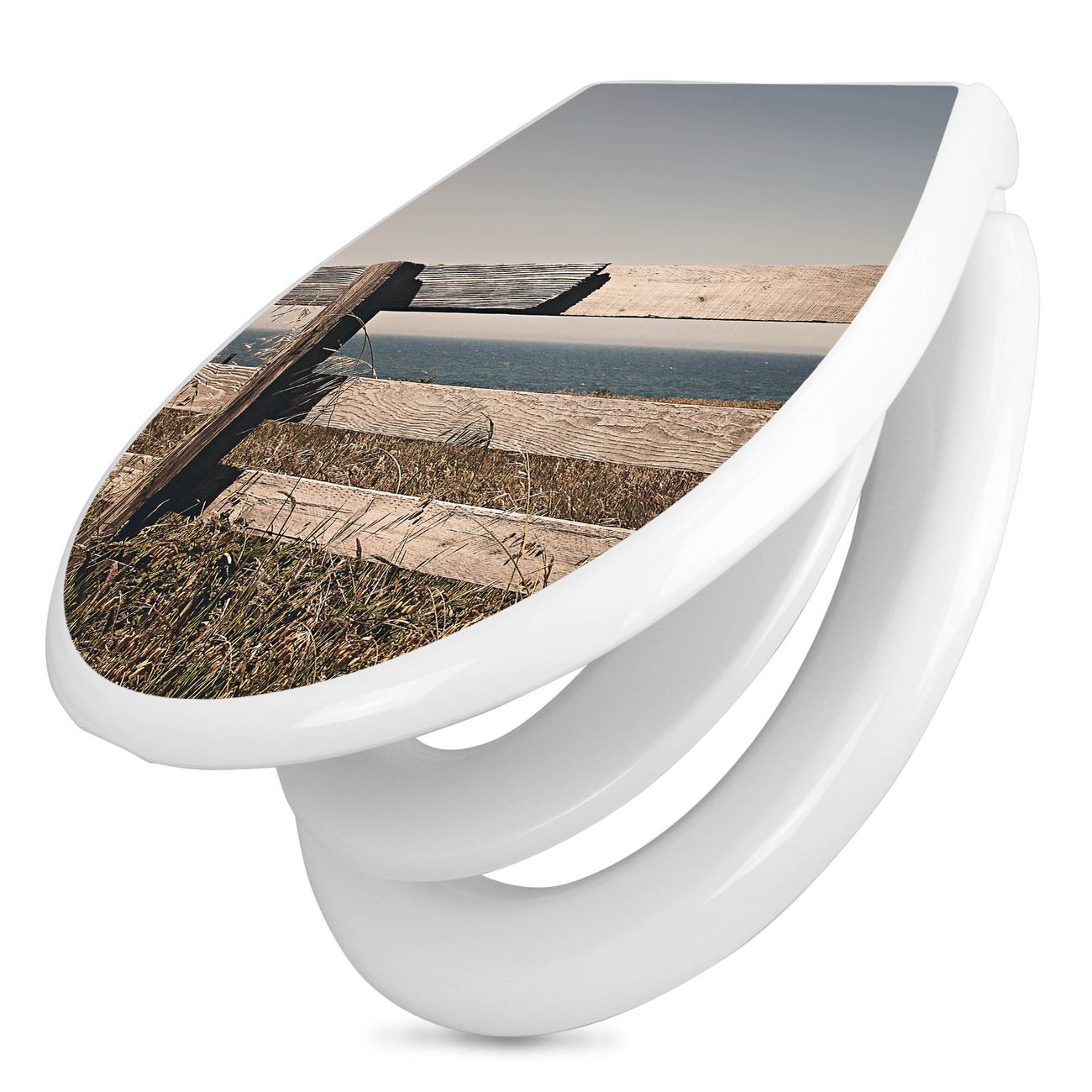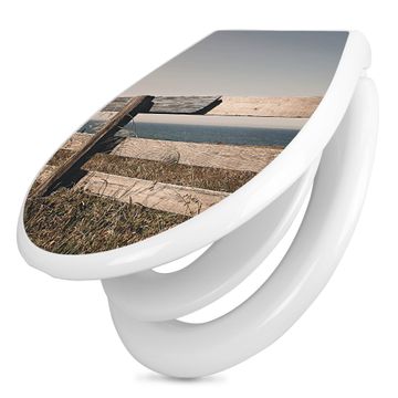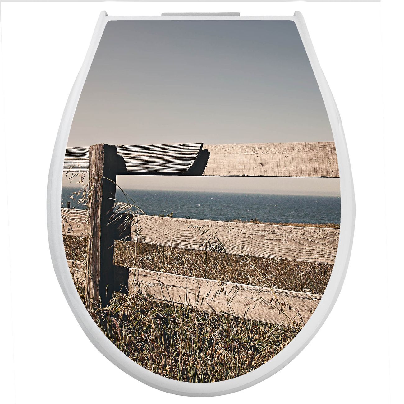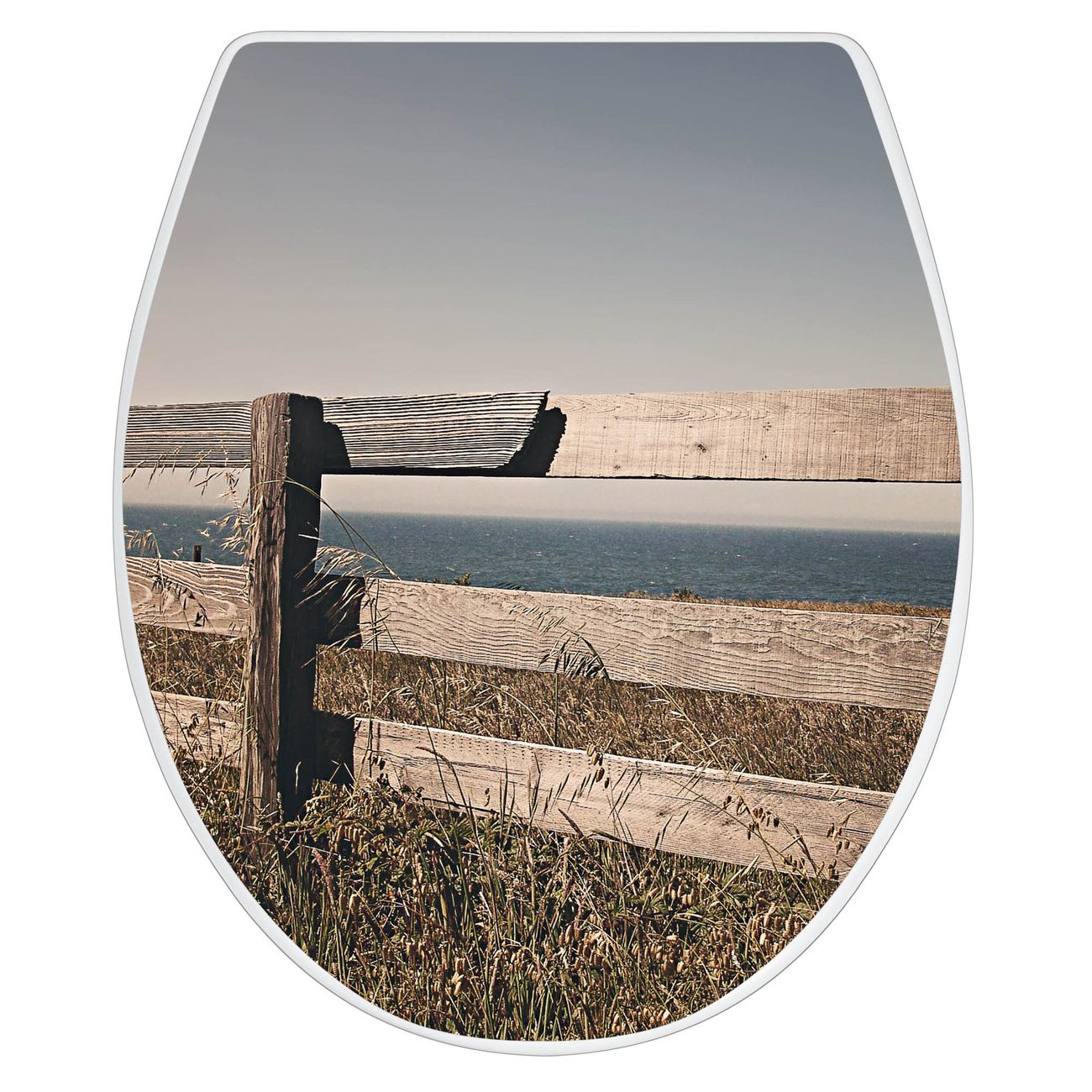 Toilettendeckel weiß mit Absenkautomatik Motiv Zaun am Meer