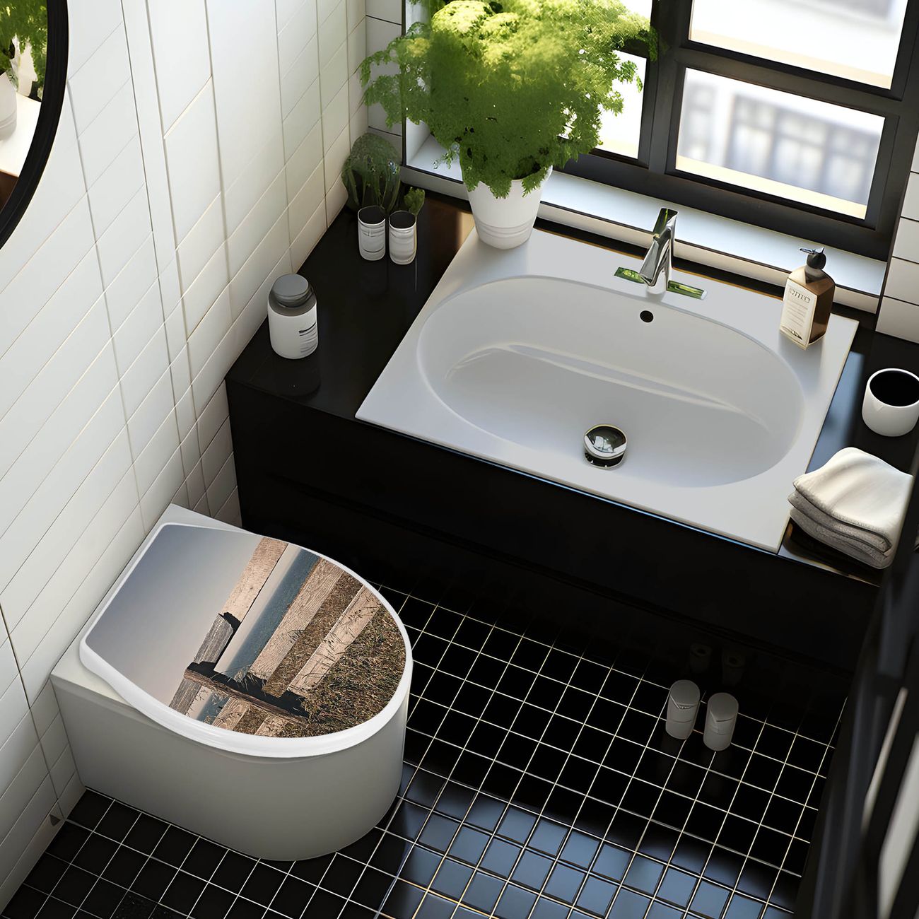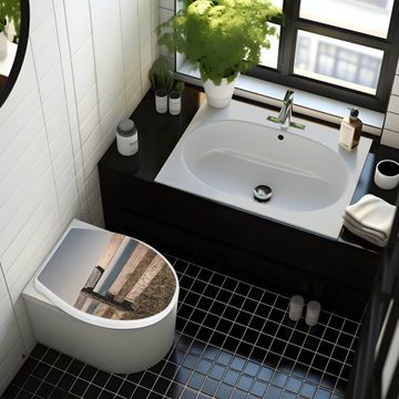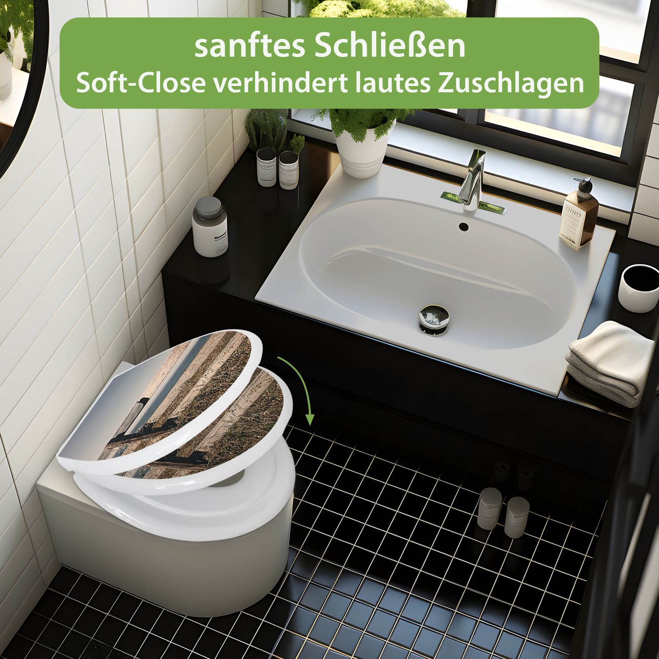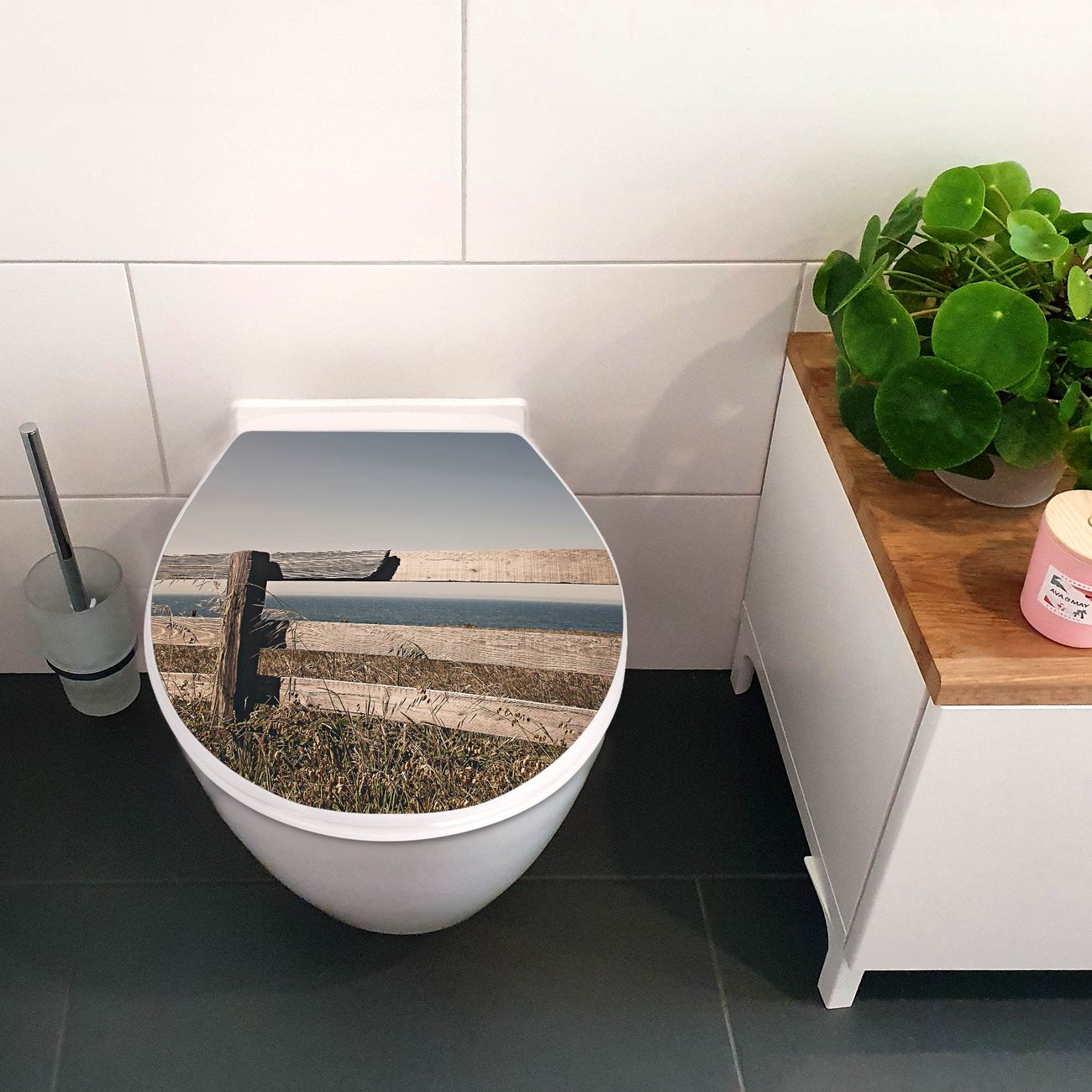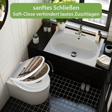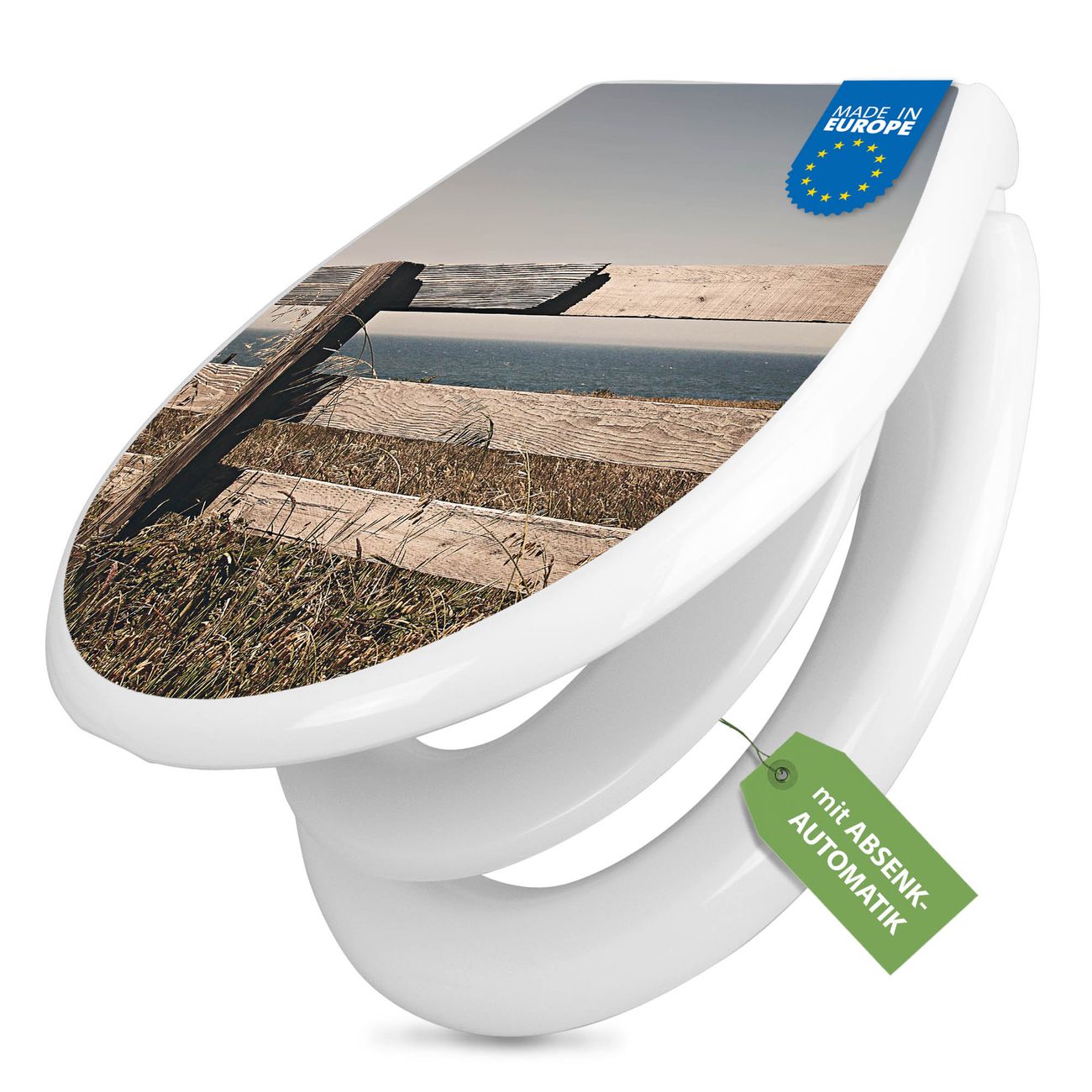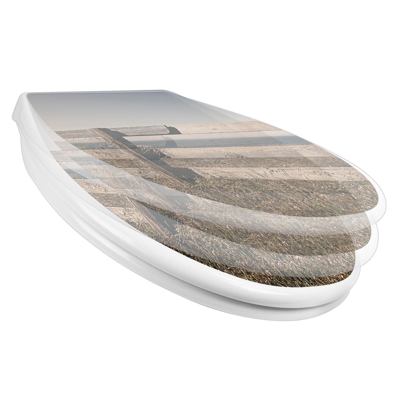 Toilettendeckel weiß mit Absenkautomatik Motiv Zaun am Meer