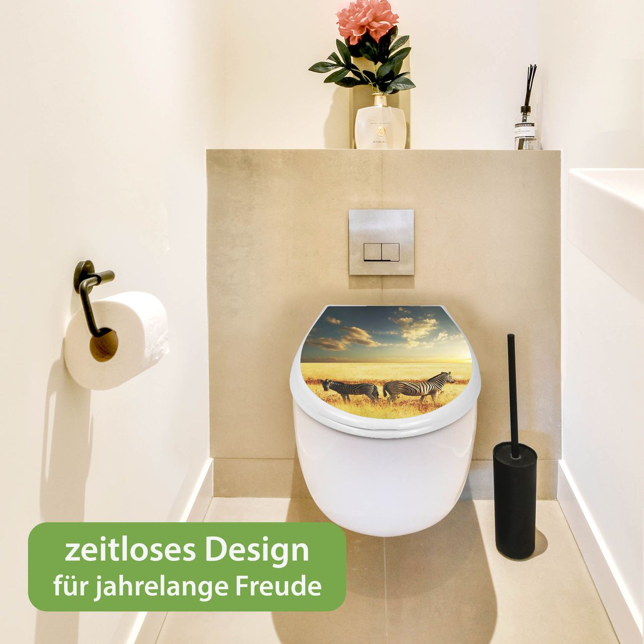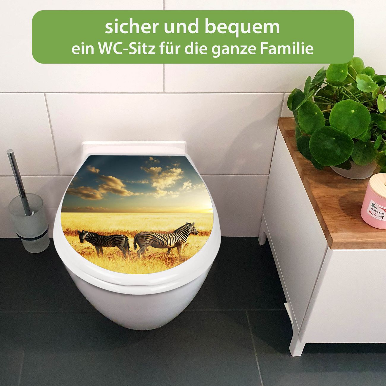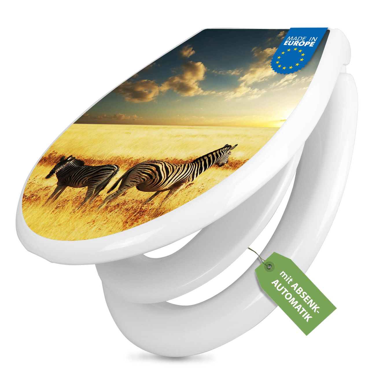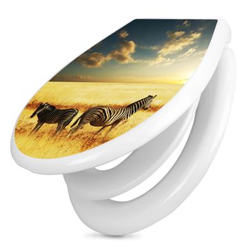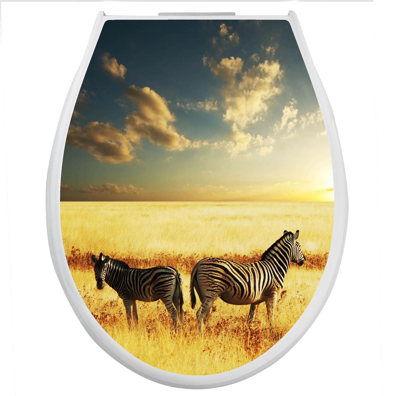 Toilettendeckel weiß mit Absenkautomatik Motiv Zwei Zebras