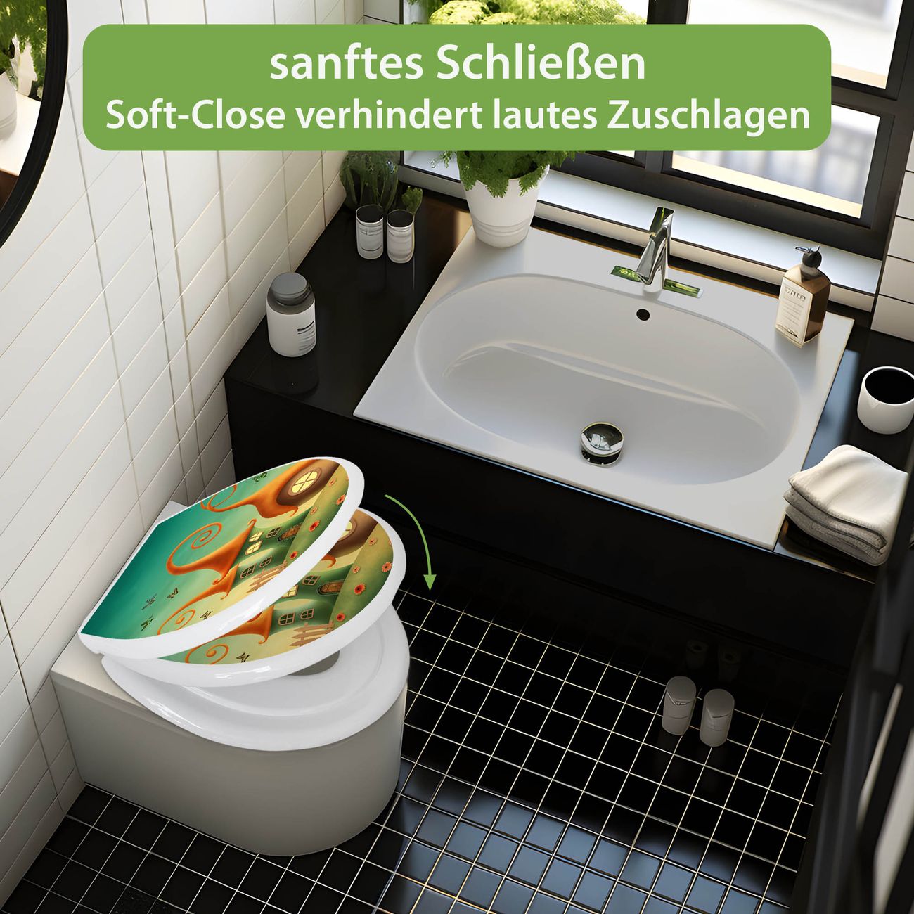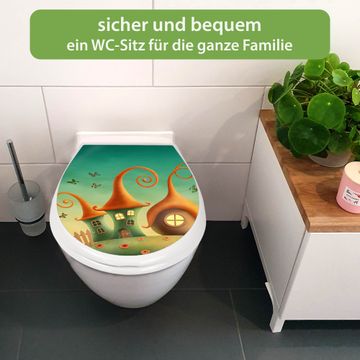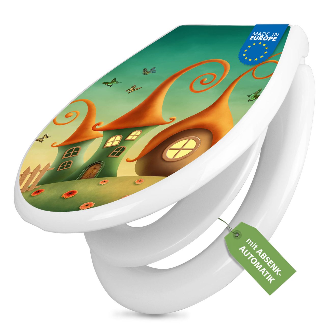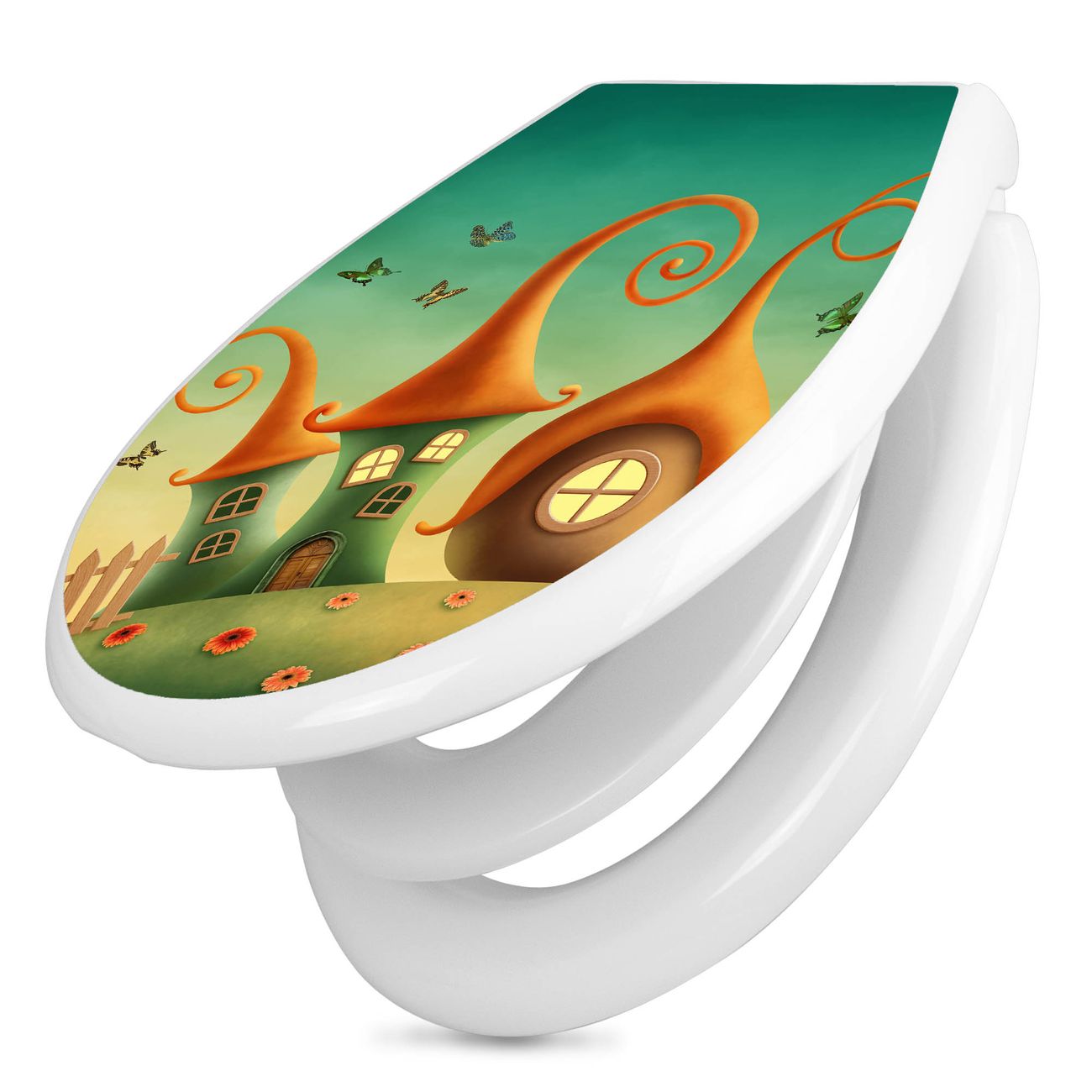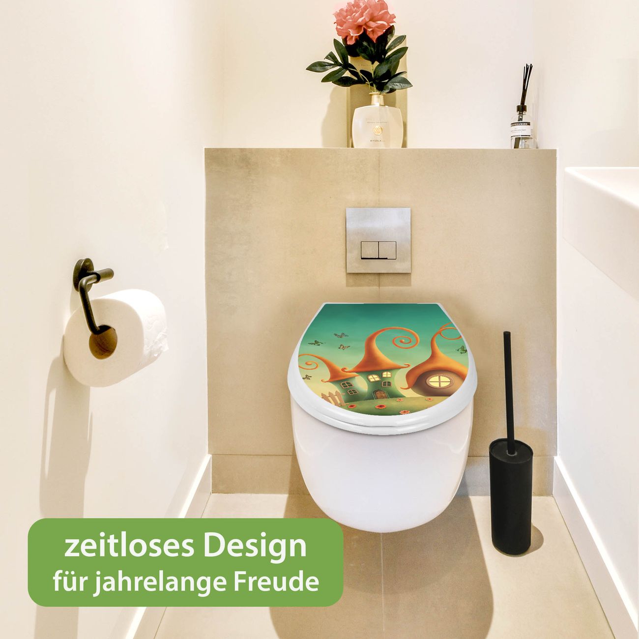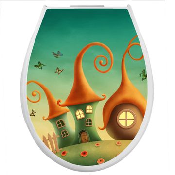 Toilettendeckel weiß mit Absenkautomatik Motiv Zwergenhausen
