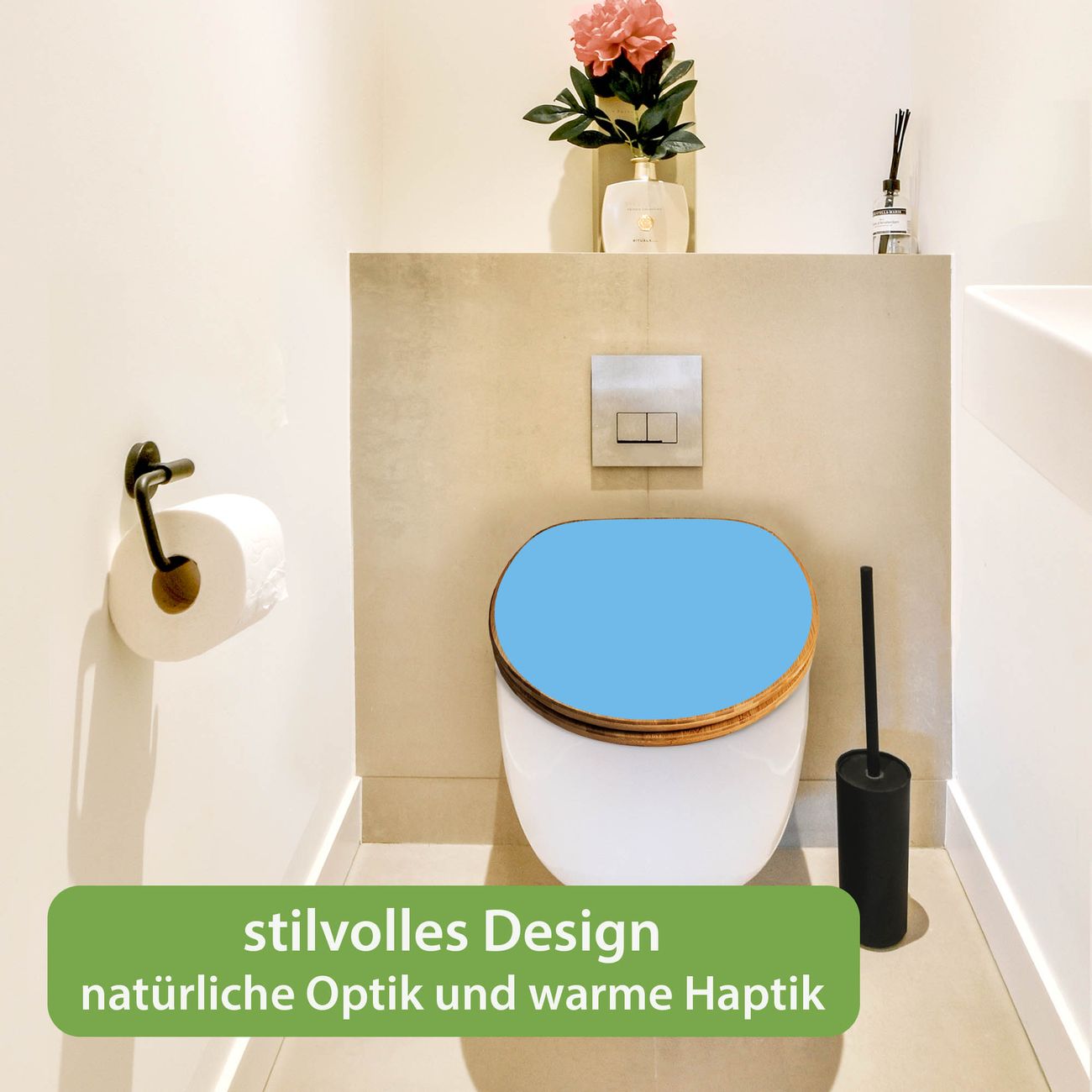 Design WC-Sitz Bambus Holz Farbe Pastellblau