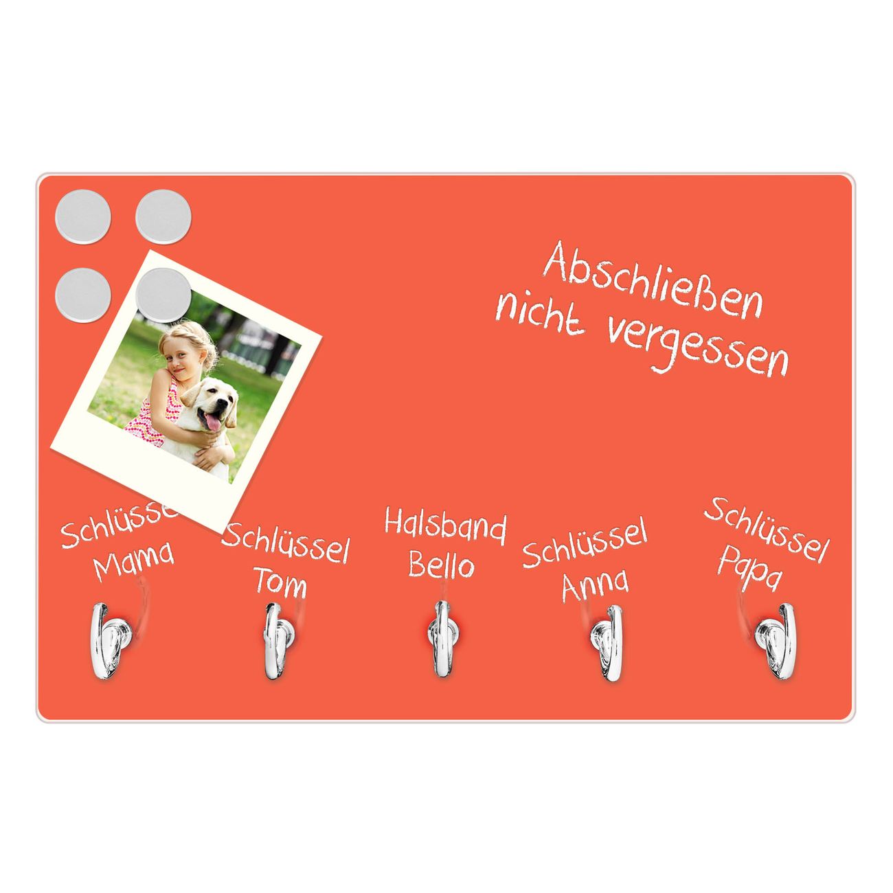 Glas Schlüsselbrett mit 5 Haken Einfarbig Orange