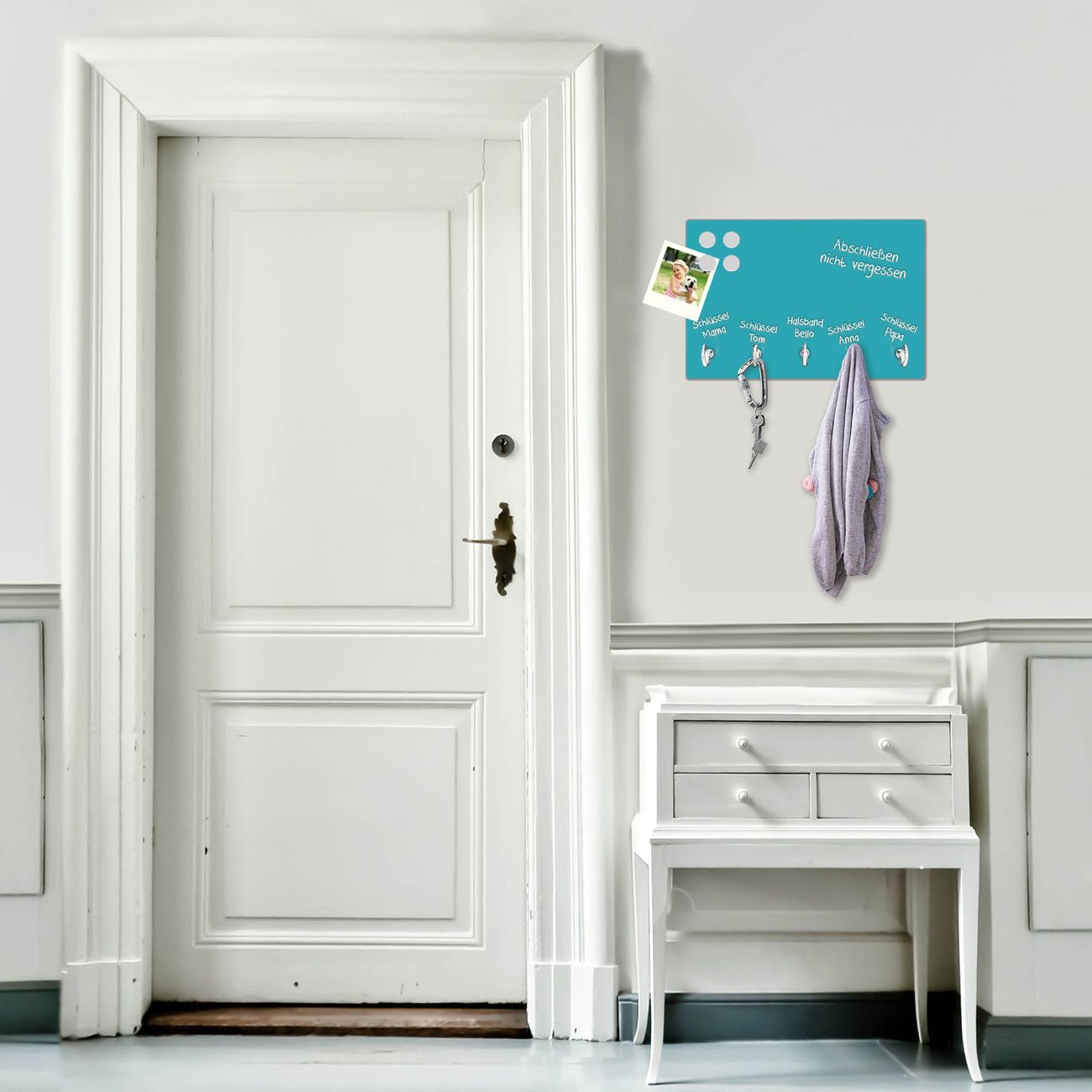 Glas Schlüsselbrett mit 5 Haken Einfarbig Türkis