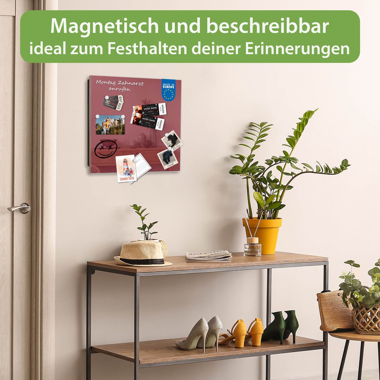 ✅ Magnetisch und mit Kreidestift beschreibbar, gehärtetes Glas, rechts angeschlagene TürOrdnung und Design in einem