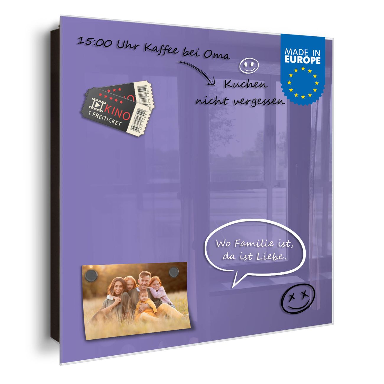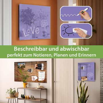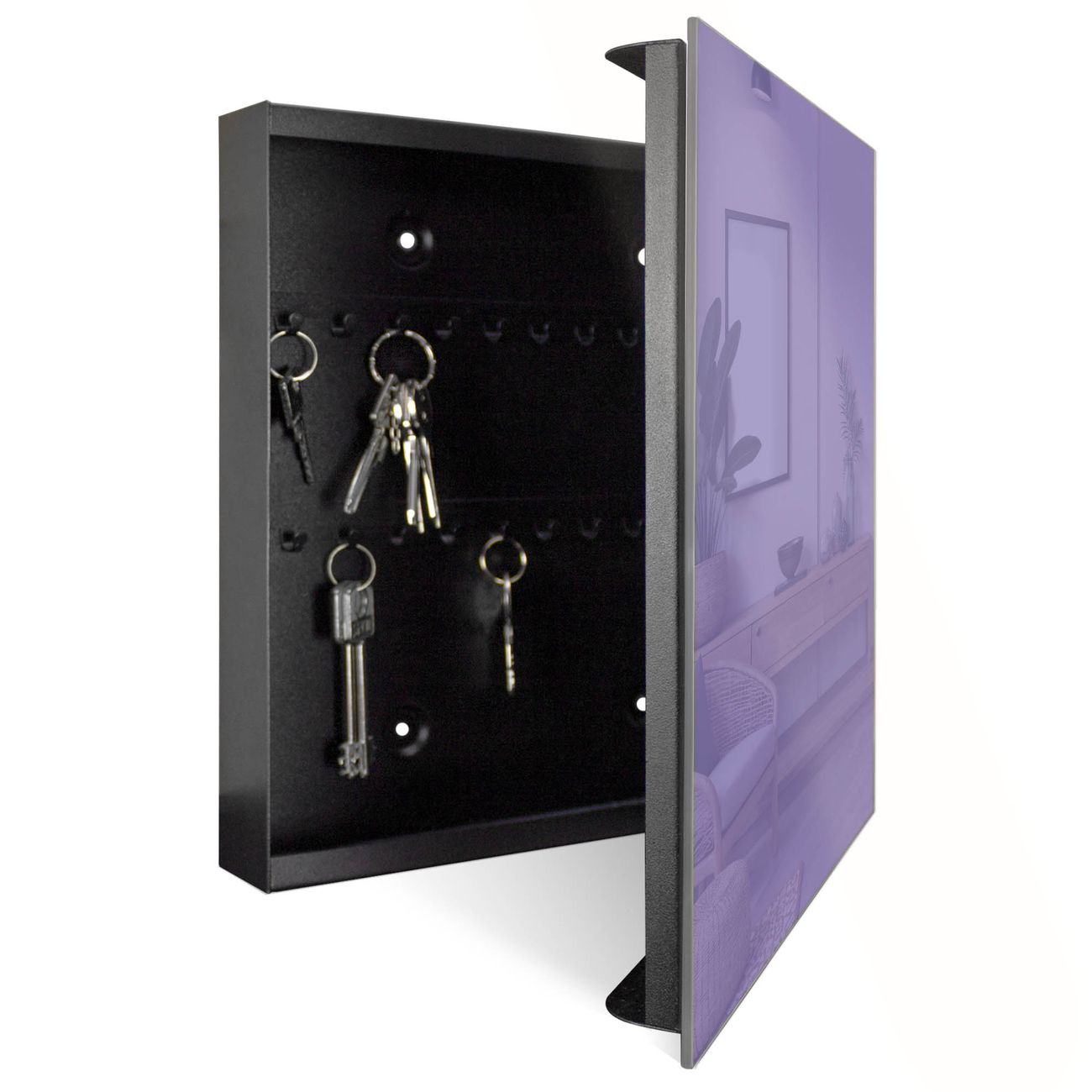 Bringe Ordnung und Eleganz in deinen Eingangsbereich mit dem banjado Schlüsselkasten Motiv Farbe Lavendel. Die moderne Schlüsselbox kombiniert funktionales Design mit hochwertiger Verarbeitung und wird so zu einem echten Hingucker in Flur, Büro oder Ferienwohnung. ✅ Stilvolle Schlüsselaufbewahrung mit Glasfront im Motiv Farbe Lavendel Der Design-Schlüsselkasten Motiv Farbe Lavendel bietet Platz für bis zu 50 Schlüssel, die auf 5 stabilen Reihen mit je 10 Haken übersichtlich verstaut werden. Mit seinen kompakten Maßen von 30 x 30 x 5 cm passt die Schlüsselbox perfekt auch in kleinere Räume. Der schwarz lackierte Stahlkorpus mit rechts angeschlagenem Türscharnier harmoniert mit der Glasfront und fügt sich nahtlos in jedes Wohnambiente ein. Ob als Schlüsselorganizer für Zuhause oder als praktische Lösung für Büros, Praxen und Gewerbe, der banjado Schlüsselkasten sorgt für Ordnung und Übersicht. Dank der magnetischen, mit Kreidestiften beschreibbaren Glasfront kannst du Notizen anheften oder Termine direkt auf der Oberfläche festhalten. Die Schlüsselbox Motiv Farbe Lavendel zur Wandmontage wird inklusive Befestigungsmaterial geliefert und ist schnell angebracht. So hast du deine Schlüssel jederzeit griffbereit und zugleich stilvoll verstaut. Mit diesem banjado Schlüsselkasten Motiv Farbe Lavendel kombinierst du praktische Aufbewahrung mit stilvollem Wohndesign. Ob privat oder geschäftlich, die Schlüsselbox sorgt für mehr Ordnung, Übersicht und ein wohnliches Ambiente.Vorteile im Überblick