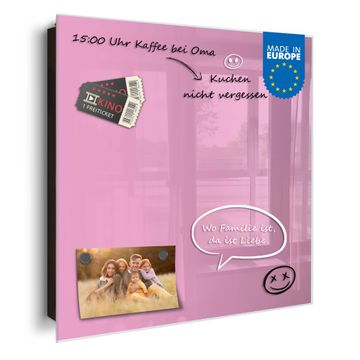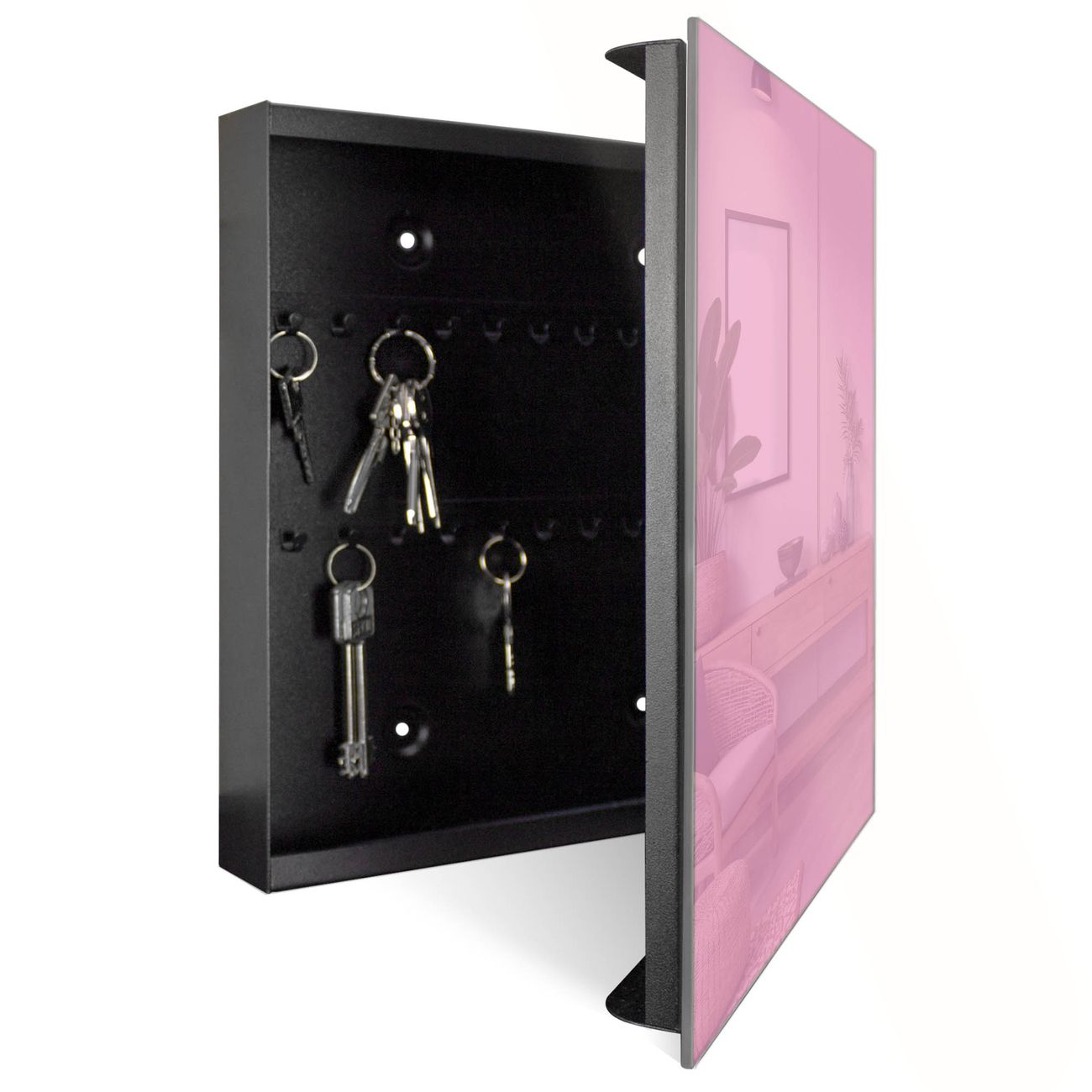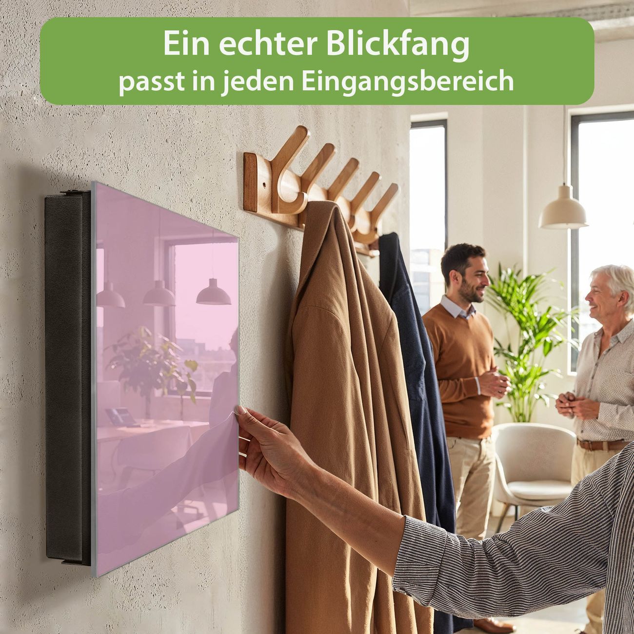 Bringe Ordnung und Eleganz in deinen Eingangsbereich mit dem banjado Schlüsselkasten Motiv Farbe Rose. Die moderne Schlüsselbox kombiniert funktionales Design mit hochwertiger Verarbeitung und wird so zu einem echten Hingucker in Flur, Büro oder Ferienwohnung. ✅ Stilvolle Schlüsselaufbewahrung mit Glasfront im Motiv Farbe Rose Der Design-Schlüsselkasten Motiv Farbe Rose bietet Platz für bis zu 50 Schlüssel, die auf 5 stabilen Reihen mit je 10 Haken übersichtlich verstaut werden. Mit seinen kompakten Maßen von 30 x 30 x 5 cm passt die Schlüsselbox perfekt auch in kleinere Räume. Der schwarz lackierte Stahlkorpus mit rechts angeschlagenem Türscharnier harmoniert mit der Glasfront und fügt sich nahtlos in jedes Wohnambiente ein. Ob als Schlüsselorganizer für Zuhause oder als praktische Lösung für Büros, Praxen und Gewerbe, der banjado Schlüsselkasten sorgt für Ordnung und Übersicht. Dank der magnetischen, mit Kreidestiften beschreibbaren Glasfront kannst du Notizen anheften oder Termine direkt auf der Oberfläche festhalten. Die Schlüsselbox Motiv Farbe Rose zur Wandmontage wird inklusive Befestigungsmaterial geliefert und ist schnell angebracht. So hast du deine Schlüssel jederzeit griffbereit und zugleich stilvoll verstaut. Mit diesem banjado Schlüsselkasten Motiv Farbe Rose kombinierst du praktische Aufbewahrung mit stilvollem Wohndesign. Ob privat oder geschäftlich, die Schlüsselbox sorgt für mehr Ordnung, Übersicht und ein wohnliches Ambiente.Vorteile im Überblick
