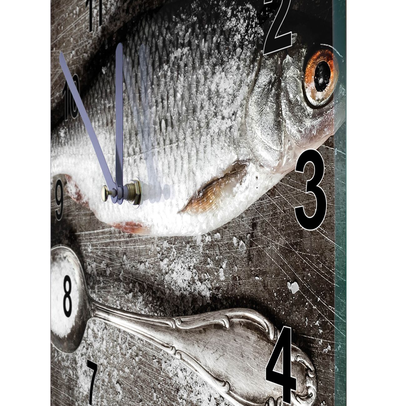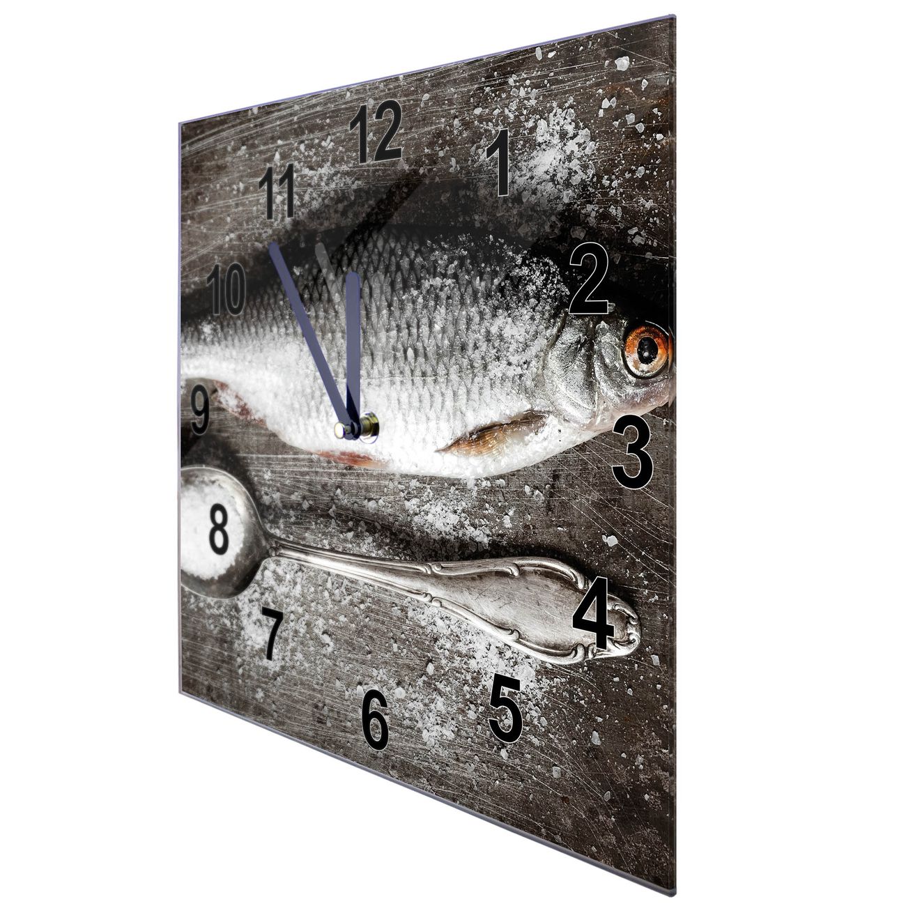 Glasuhr quadratisch Motiv Fisch Und Salz