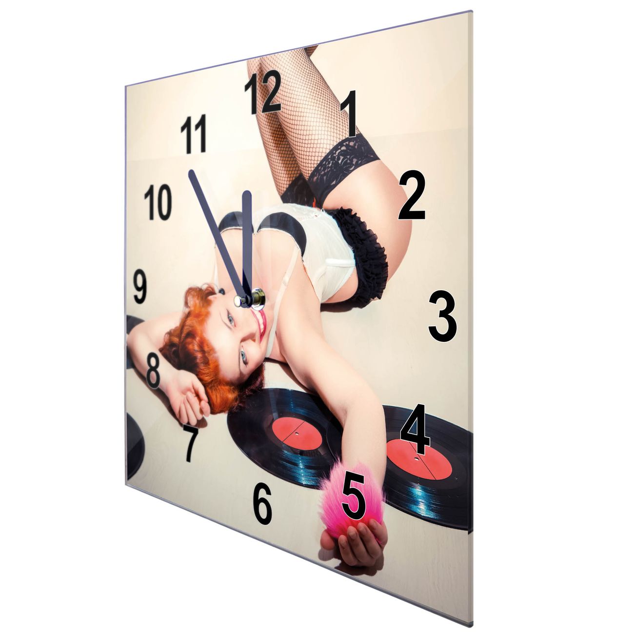 FUNKTION: Mit der banjado Wanduhr aus Glas mit dem Motiv Hot Vinyl behalten Sie die Zeit immer im Blick, stilsicher und zuverlässig erkennen Sie auf einen Blick was die Stunde geschlagen hat. DESIGN: Die schlichte Form der Uhr sowie das individuelle Motiv passen sich hervorragend jedem Wohnraumkonzept an, egal ob klassisch, nostalgisch oder modern. DETAILS: Die Glasuhr ist quadratisch, 30 x 30cm groß und verfügt über ein geräuscharmes Uhrwerk mit schwarzen Zeigern. Das Motiv Hot Vinyl befindet sich effektvoll hinter Glas. NUTZEN: Die banjado Glas Wanduhr verbindet Design und Funktion. Perfekt für Küche, Büro, Wohnzimmer oder Kinderzimmer, haben Sie die Zeit im Blick und eine schöne Wanddekoration. BANJADO: Wir fertigen alle Wanduhren auf Bestellung von Hand, erfüllen dabei auch gern Sonderwünsche. Wir wünschen viel Freude bei der Auswahl eines schönen Motivs. Herzlichst, banjado aus Sachsen