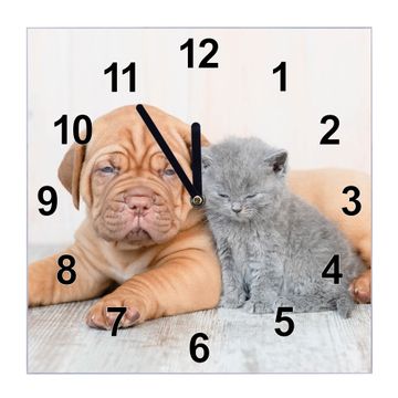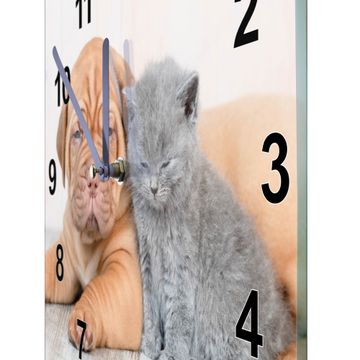 FUNKTION: Mit der banjado Wanduhr aus Glas mit dem Motiv Hund und Katze behalten Sie die Zeit immer im Blick, stilsicher und zuverlässig erkennen Sie auf einen Blick was die Stunde geschlagen hat. DESIGN: Die schlichte Form der Uhr sowie das individuelle Motiv passen sich hervorragend jedem Wohnraumkonzept an, egal ob klassisch, nostalgisch oder modern. DETAILS: Die Glasuhr ist quadratisch, 30 x 30cm groß und verfügt über ein geräuscharmes Uhrwerk mit schwarzen Zeigern. Das Motiv Hund und Katze befindet sich effektvoll hinter Glas. NUTZEN: Die banjado Glas Wanduhr verbindet Design und Funktion. Perfekt für Küche, Büro, Wohnzimmer oder Kinderzimmer, haben Sie die Zeit im Blick und eine schöne Wanddekoration. BANJADO: Wir fertigen alle Wanduhren auf Bestellung von Hand, erfüllen dabei auch gern Sonderwünsche. Wir wünschen viel Freude bei der Auswahl eines schönen Motivs. Herzlichst, banjado aus Sachsen