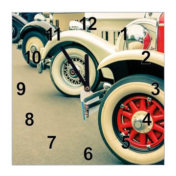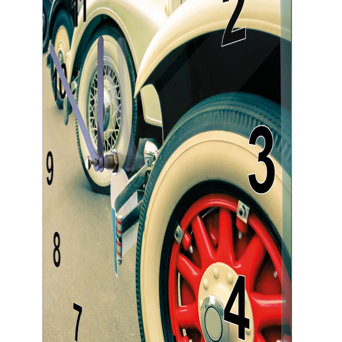 Glasuhr quadratisch Motiv Oldtimer Räder