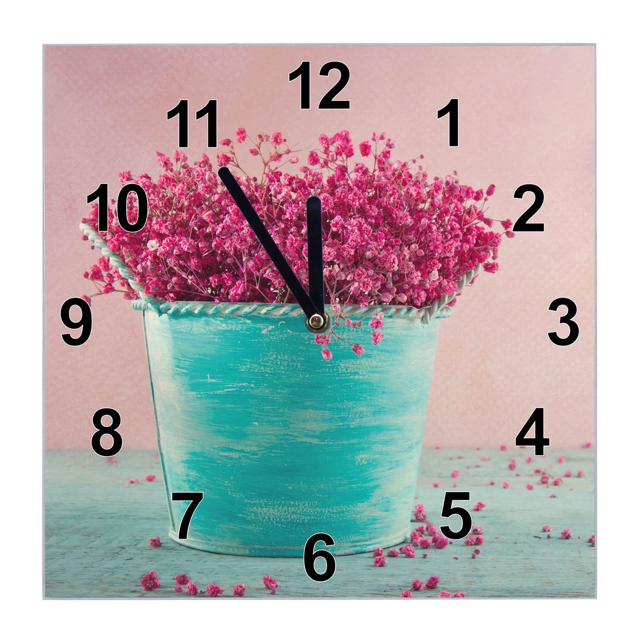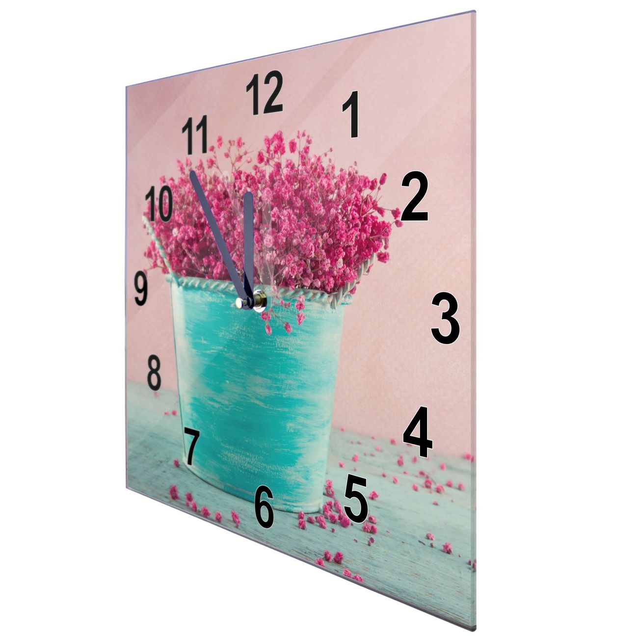 Glasuhr quadratisch Motiv Pinke Trockenblumen