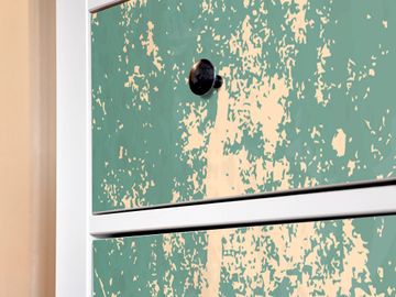 FUNKTION: Die banjado Möbelfolie mit Motiv Altes Papier zaubert im Handumdrehen aus Ihrer Ikea HEMNES Kommode ein individuell gestaltetes Unikat. Verziert mit einem traumhaften Motiv verbindet die HEMNES Kommode jede Menge Stauraum mit ansprechendem Design. Die gezeigte IKEA HEMNES Komode ist nicht im Angebot enthalten. DESIGN: Die banjado Klebefolie gestaltet Ihr Ikea Möbelstück völlig neu. So passt sich die HEMNESKommode verschiedenen Einrichtungsstilen an. Lassen Sie Ihrer Kreativität freien Raum, wir helfen Ihnen bei der Umsetzung. DETAILS: Der banjado Altes Papier Möbelsticker ist selbstklebend und wird Ihnen bereits fertig zugeschnitten geliefert. Sie können Schritt für Schritt jede Schublade einzeln bekleben, eine detaillierte Verklebeanleitung liegt selbstverständlich bei. Die Folie ist mit einem zusätzlichen Laminat überzogen, dass Ihr Möbelstück zusätzlich vor Kratzern schützt. NUTZEN: Sie können die banjado Möbelfolie wunderbar nutzen, um abgeplatzte, schmutzige oder unschöne Stellen an Ihrer Malm Kommode zu überdecken. Mit einem wechselnden Design können Sie Ihren Einrichtungsstil ändern oder aus einer Kinderkommode eine Flurkommode gestalten. Alle verwendeten Farben sind lösungsmittelfrei. BANJADO: Ihre Design Folie wird in Sachsen in einer kleinen Manufaktur angefertigt und verpackt. Wir legen großen Wert auf die Verbindung von Funktionalität und Design.