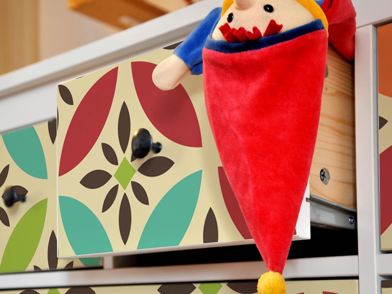 FUNKTION: Die banjado Möbelfolie mit Motiv Diamant Muster zaubert im Handumdrehen aus Ihrer Ikea HEMNES Kommode ein individuell gestaltetes Unikat. Verziert mit einem traumhaften Motiv verbindet die HEMNES Kommode jede Menge Stauraum mit ansprechendem Design. Die gezeigte IKEA HEMNES Komode ist nicht im Angebot enthalten. DESIGN: Die banjado Klebefolie gestaltet Ihr Ikea Möbelstück völlig neu. So passt sich die HEMNESKommode verschiedenen Einrichtungsstilen an. Lassen Sie Ihrer Kreativität freien Raum, wir helfen Ihnen bei der Umsetzung. DETAILS: Der banjado Diamant Muster Möbelsticker ist selbstklebend und wird Ihnen bereits fertig zugeschnitten geliefert. Sie können Schritt für Schritt jede Schublade einzeln bekleben, eine detaillierte Verklebeanleitung liegt selbstverständlich bei. Die Folie ist mit einem zusätzlichen Laminat überzogen, dass Ihr Möbelstück zusätzlich vor Kratzern schützt. NUTZEN: Sie können die banjado Möbelfolie wunderbar nutzen, um abgeplatzte, schmutzige oder unschöne Stellen an Ihrer Malm Kommode zu überdecken. Mit einem wechselnden Design können Sie Ihren Einrichtungsstil ändern oder aus einer Kinderkommode eine Flurkommode gestalten. Alle verwendeten Farben sind lösungsmittelfrei. BANJADO: Ihre Design Folie wird in Sachsen in einer kleinen Manufaktur angefertigt und verpackt. Wir legen großen Wert auf die Verbindung von Funktionalität und Design.