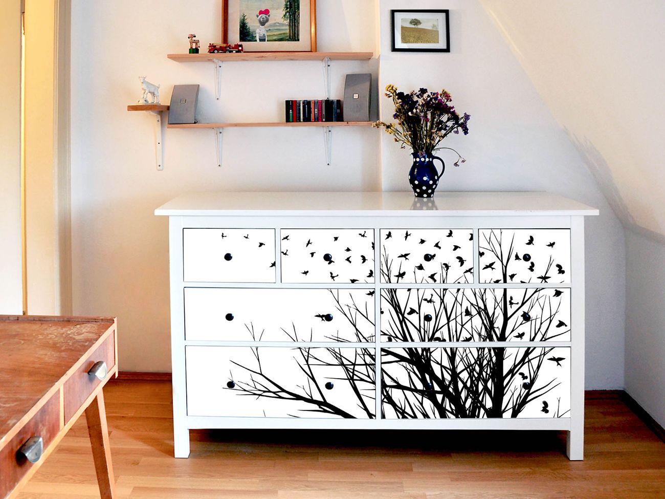 Möbelsticker für Ikea HEMNES Motiv Fortfliegen