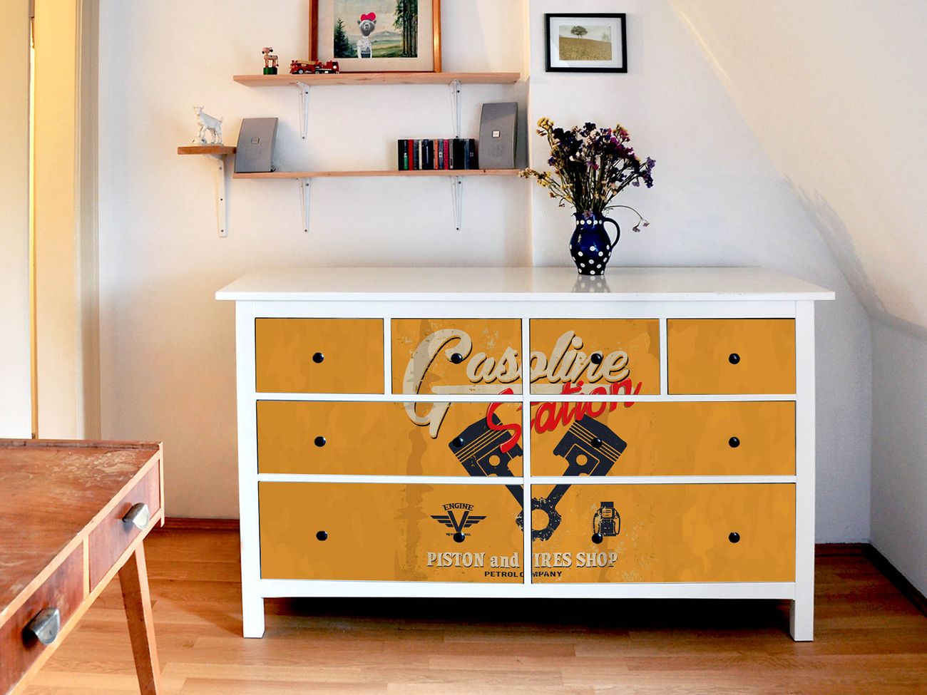 Möbelsticker für Ikea HEMNES Motiv Gasoline Station