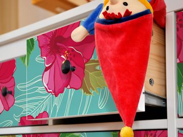 FUNKTION: Die banjado Möbelfolie mit Motiv Hibiskus zaubert im Handumdrehen aus Ihrer Ikea HEMNES Kommode ein individuell gestaltetes Unikat. Verziert mit einem traumhaften Motiv verbindet die HEMNES Kommode jede Menge Stauraum mit ansprechendem Design. Die gezeigte IKEA HEMNES Komode ist nicht im Angebot enthalten. DESIGN: Die banjado Klebefolie gestaltet Ihr Ikea Möbelstück völlig neu. So passt sich die HEMNESKommode verschiedenen Einrichtungsstilen an. Lassen Sie Ihrer Kreativität freien Raum, wir helfen Ihnen bei der Umsetzung. DETAILS: Der banjado Hibiskus Möbelsticker ist selbstklebend und wird Ihnen bereits fertig zugeschnitten geliefert. Sie können Schritt für Schritt jede Schublade einzeln bekleben, eine detaillierte Verklebeanleitung liegt selbstverständlich bei. Die Folie ist mit einem zusätzlichen Laminat überzogen, dass Ihr Möbelstück zusätzlich vor Kratzern schützt. NUTZEN: Sie können die banjado Möbelfolie wunderbar nutzen, um abgeplatzte, schmutzige oder unschöne Stellen an Ihrer Malm Kommode zu überdecken. Mit einem wechselnden Design können Sie Ihren Einrichtungsstil ändern oder aus einer Kinderkommode eine Flurkommode gestalten. Alle verwendeten Farben sind lösungsmittelfrei. BANJADO: Ihre Design Folie wird in Sachsen in einer kleinen Manufaktur angefertigt und verpackt. Wir legen großen Wert auf die Verbindung von Funktionalität und Design.