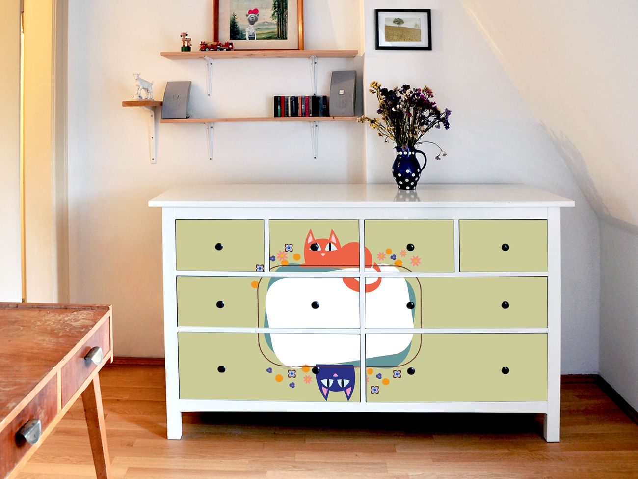 Möbelsticker für Ikea HEMNES Motiv Karikatur Katzen