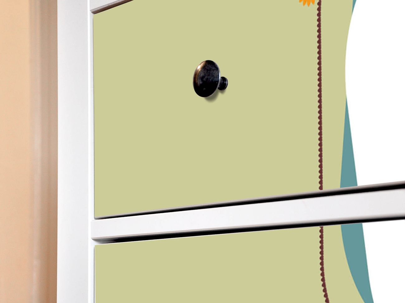 FUNKTION: Die banjado Möbelfolie mit Motiv Karikatur Katzen zaubert im Handumdrehen aus Ihrer Ikea HEMNES Kommode ein individuell gestaltetes Unikat. Verziert mit einem traumhaften Motiv verbindet die HEMNES Kommode jede Menge Stauraum mit ansprechendem Design. Die gezeigte IKEA HEMNES Komode ist nicht im Angebot enthalten. DESIGN: Die banjado Klebefolie gestaltet Ihr Ikea Möbelstück völlig neu. So passt sich die HEMNESKommode verschiedenen Einrichtungsstilen an. Lassen Sie Ihrer Kreativität freien Raum, wir helfen Ihnen bei der Umsetzung. DETAILS: Der banjado Karikatur Katzen Möbelsticker ist selbstklebend und wird Ihnen bereits fertig zugeschnitten geliefert. Sie können Schritt für Schritt jede Schublade einzeln bekleben, eine detaillierte Verklebeanleitung liegt selbstverständlich bei. Die Folie ist mit einem zusätzlichen Laminat überzogen, dass Ihr Möbelstück zusätzlich vor Kratzern schützt. NUTZEN: Sie können die banjado Möbelfolie wunderbar nutzen, um abgeplatzte, schmutzige oder unschöne Stellen an Ihrer Malm Kommode zu überdecken. Mit einem wechselnden Design können Sie Ihren Einrichtungsstil ändern oder aus einer Kinderkommode eine Flurkommode gestalten. Alle verwendeten Farben sind lösungsmittelfrei. BANJADO: Ihre Design Folie wird in Sachsen in einer kleinen Manufaktur angefertigt und verpackt. Wir legen großen Wert auf die Verbindung von Funktionalität und Design.