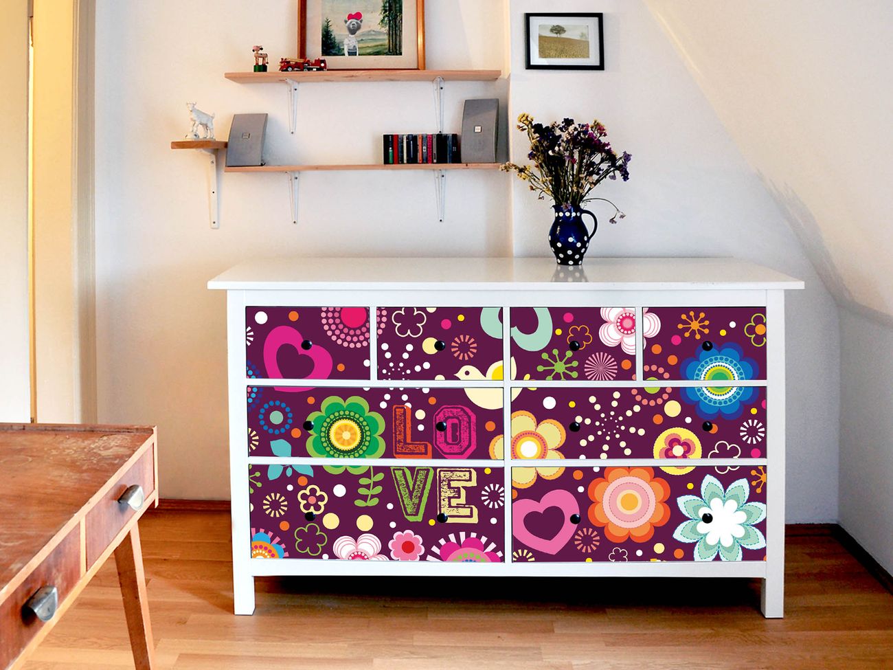 Möbelsticker für Ikea HEMNES Motiv Love and Peace