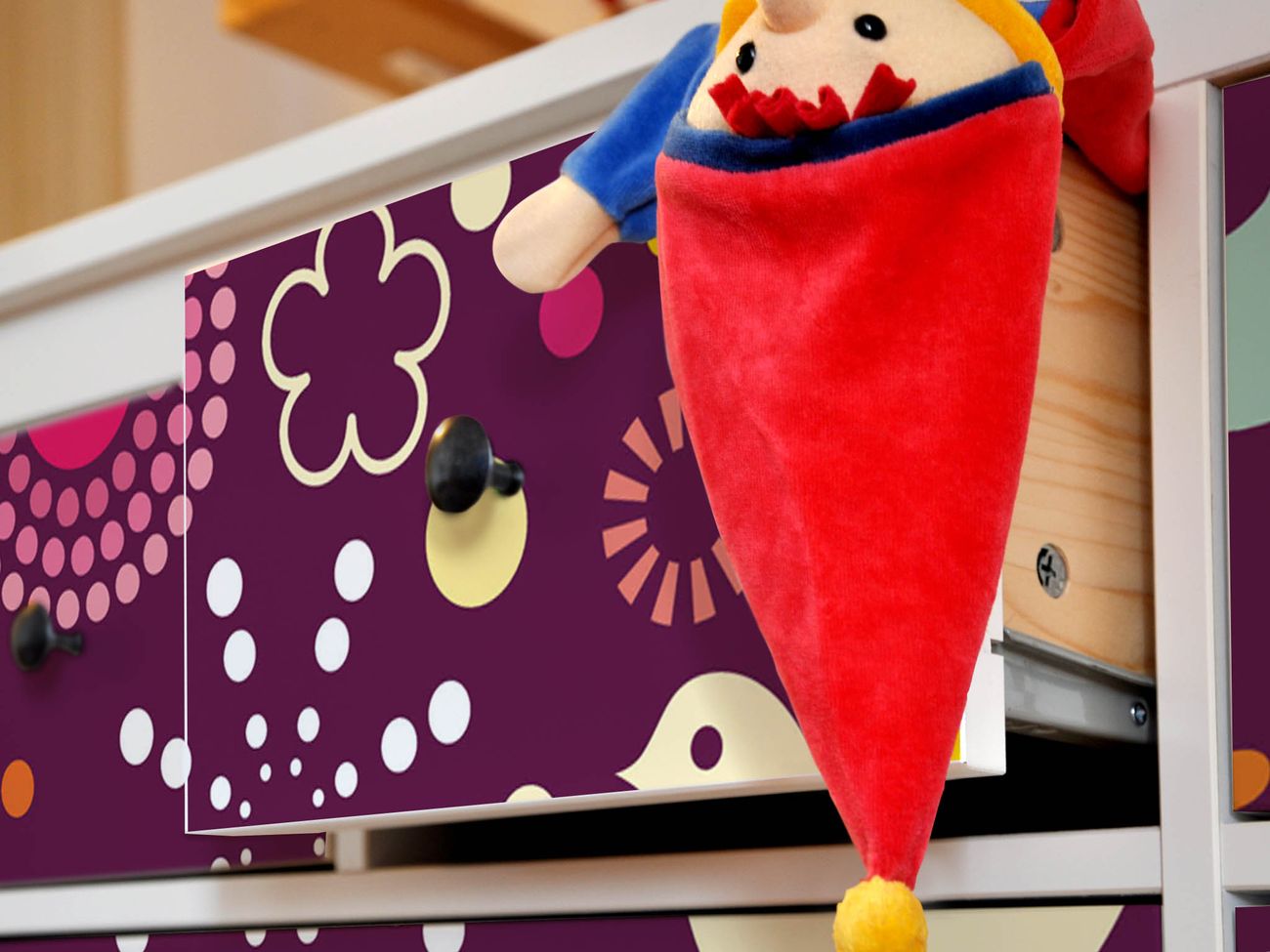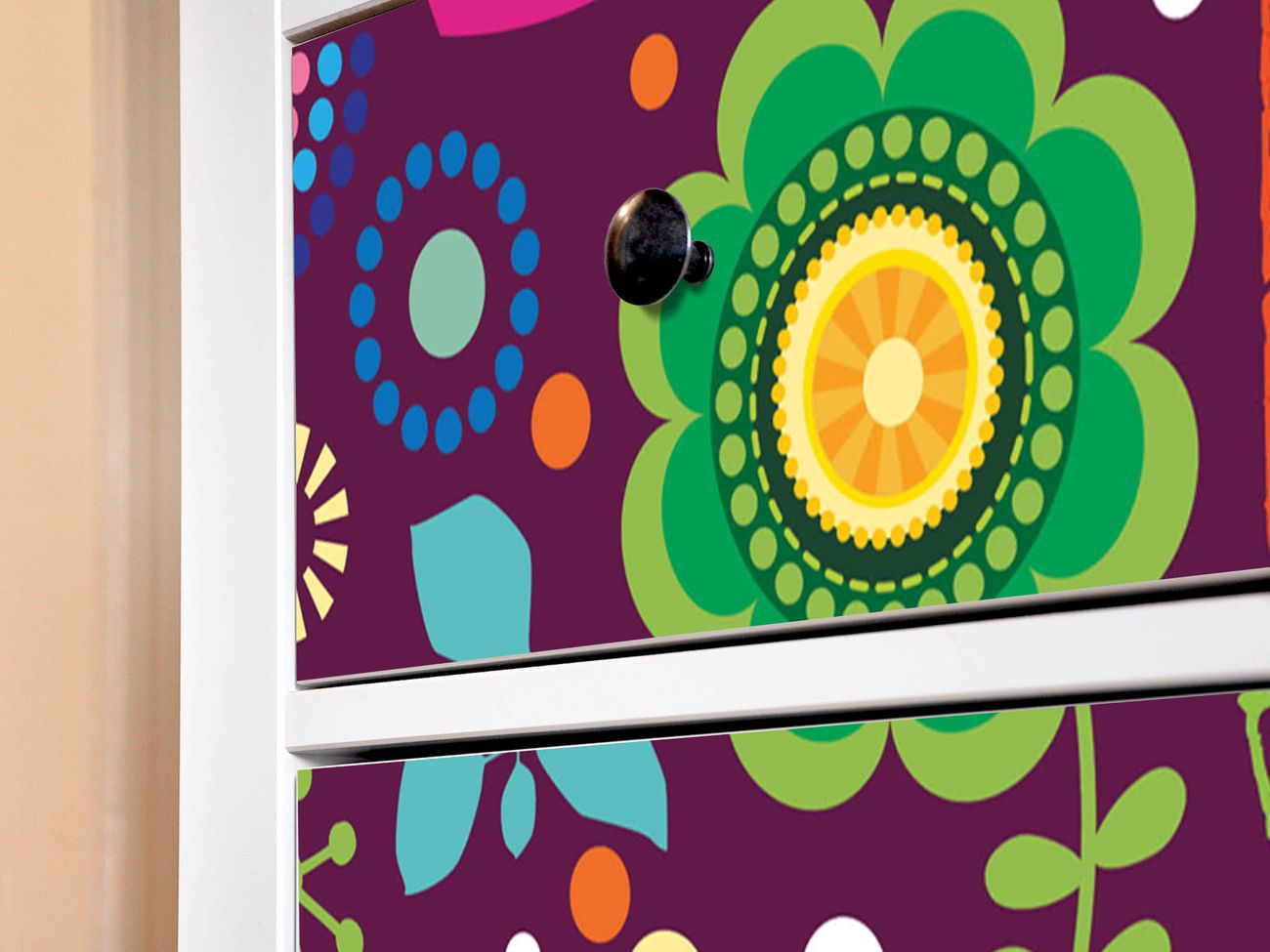 FUNKTION: Die banjado Möbelfolie mit Motiv Love and Peace zaubert im Handumdrehen aus Ihrer Ikea HEMNES Kommode ein individuell gestaltetes Unikat. Verziert mit einem traumhaften Motiv verbindet die HEMNES Kommode jede Menge Stauraum mit ansprechendem Design. Die gezeigte IKEA HEMNES Komode ist nicht im Angebot enthalten. DESIGN: Die banjado Klebefolie gestaltet Ihr Ikea Möbelstück völlig neu. So passt sich die HEMNESKommode verschiedenen Einrichtungsstilen an. Lassen Sie Ihrer Kreativität freien Raum, wir helfen Ihnen bei der Umsetzung. DETAILS: Der banjado Love and Peace Möbelsticker ist selbstklebend und wird Ihnen bereits fertig zugeschnitten geliefert. Sie können Schritt für Schritt jede Schublade einzeln bekleben, eine detaillierte Verklebeanleitung liegt selbstverständlich bei. Die Folie ist mit einem zusätzlichen Laminat überzogen, dass Ihr Möbelstück zusätzlich vor Kratzern schützt. NUTZEN: Sie können die banjado Möbelfolie wunderbar nutzen, um abgeplatzte, schmutzige oder unschöne Stellen an Ihrer Malm Kommode zu überdecken. Mit einem wechselnden Design können Sie Ihren Einrichtungsstil ändern oder aus einer Kinderkommode eine Flurkommode gestalten. Alle verwendeten Farben sind lösungsmittelfrei. BANJADO: Ihre Design Folie wird in Sachsen in einer kleinen Manufaktur angefertigt und verpackt. Wir legen großen Wert auf die Verbindung von Funktionalität und Design.