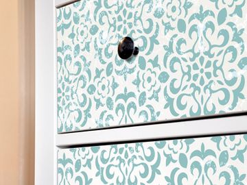 FUNKTION: Die banjado Möbelfolie mit Motiv Muster Getupft Blau zaubert im Handumdrehen aus Ihrer Ikea HEMNES Kommode ein individuell gestaltetes Unikat. Verziert mit einem traumhaften Motiv verbindet die HEMNES Kommode jede Menge Stauraum mit ansprechendem Design. Die gezeigte IKEA HEMNES Komode ist nicht im Angebot enthalten. DESIGN: Die banjado Klebefolie gestaltet Ihr Ikea Möbelstück völlig neu. So passt sich die HEMNESKommode verschiedenen Einrichtungsstilen an. Lassen Sie Ihrer Kreativität freien Raum, wir helfen Ihnen bei der Umsetzung. DETAILS: Der banjado Muster Getupft Blau Möbelsticker ist selbstklebend und wird Ihnen bereits fertig zugeschnitten geliefert. Sie können Schritt für Schritt jede Schublade einzeln bekleben, eine detaillierte Verklebeanleitung liegt selbstverständlich bei. Die Folie ist mit einem zusätzlichen Laminat überzogen, dass Ihr Möbelstück zusätzlich vor Kratzern schützt. NUTZEN: Sie können die banjado Möbelfolie wunderbar nutzen, um abgeplatzte, schmutzige oder unschöne Stellen an Ihrer Malm Kommode zu überdecken. Mit einem wechselnden Design können Sie Ihren Einrichtungsstil ändern oder aus einer Kinderkommode eine Flurkommode gestalten. Alle verwendeten Farben sind lösungsmittelfrei. BANJADO: Ihre Design Folie wird in Sachsen in einer kleinen Manufaktur angefertigt und verpackt. Wir legen großen Wert auf die Verbindung von Funktionalität und Design.