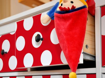 FUNKTION: Die banjado Möbelfolie mit Motiv Punkte Rot zaubert im Handumdrehen aus Ihrer Ikea HEMNES Kommode ein individuell gestaltetes Unikat. Verziert mit einem traumhaften Motiv verbindet die HEMNES Kommode jede Menge Stauraum mit ansprechendem Design. Die gezeigte IKEA HEMNES Komode ist nicht im Angebot enthalten. DESIGN: Die banjado Klebefolie gestaltet Ihr Ikea Möbelstück völlig neu. So passt sich die HEMNESKommode verschiedenen Einrichtungsstilen an. Lassen Sie Ihrer Kreativität freien Raum, wir helfen Ihnen bei der Umsetzung. DETAILS: Der banjado Punkte Rot Möbelsticker ist selbstklebend und wird Ihnen bereits fertig zugeschnitten geliefert. Sie können Schritt für Schritt jede Schublade einzeln bekleben, eine detaillierte Verklebeanleitung liegt selbstverständlich bei. Die Folie ist mit einem zusätzlichen Laminat überzogen, dass Ihr Möbelstück zusätzlich vor Kratzern schützt. NUTZEN: Sie können die banjado Möbelfolie wunderbar nutzen, um abgeplatzte, schmutzige oder unschöne Stellen an Ihrer Malm Kommode zu überdecken. Mit einem wechselnden Design können Sie Ihren Einrichtungsstil ändern oder aus einer Kinderkommode eine Flurkommode gestalten. Alle verwendeten Farben sind lösungsmittelfrei. BANJADO: Ihre Design Folie wird in Sachsen in einer kleinen Manufaktur angefertigt und verpackt. Wir legen großen Wert auf die Verbindung von Funktionalität und Design.