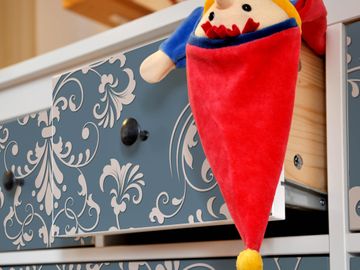 FUNKTION: Die banjado Möbelfolie mit Motiv Royal Creme Blau zaubert im Handumdrehen aus Ihrer Ikea HEMNES Kommode ein individuell gestaltetes Unikat. Verziert mit einem traumhaften Motiv verbindet die HEMNES Kommode jede Menge Stauraum mit ansprechendem Design. Die gezeigte IKEA HEMNES Komode ist nicht im Angebot enthalten. DESIGN: Die banjado Klebefolie gestaltet Ihr Ikea Möbelstück völlig neu. So passt sich die HEMNESKommode verschiedenen Einrichtungsstilen an. Lassen Sie Ihrer Kreativität freien Raum, wir helfen Ihnen bei der Umsetzung. DETAILS: Der banjado Royal Creme Blau Möbelsticker ist selbstklebend und wird Ihnen bereits fertig zugeschnitten geliefert. Sie können Schritt für Schritt jede Schublade einzeln bekleben, eine detaillierte Verklebeanleitung liegt selbstverständlich bei. Die Folie ist mit einem zusätzlichen Laminat überzogen, dass Ihr Möbelstück zusätzlich vor Kratzern schützt. NUTZEN: Sie können die banjado Möbelfolie wunderbar nutzen, um abgeplatzte, schmutzige oder unschöne Stellen an Ihrer Malm Kommode zu überdecken. Mit einem wechselnden Design können Sie Ihren Einrichtungsstil ändern oder aus einer Kinderkommode eine Flurkommode gestalten. Alle verwendeten Farben sind lösungsmittelfrei. BANJADO: Ihre Design Folie wird in Sachsen in einer kleinen Manufaktur angefertigt und verpackt. Wir legen großen Wert auf die Verbindung von Funktionalität und Design.