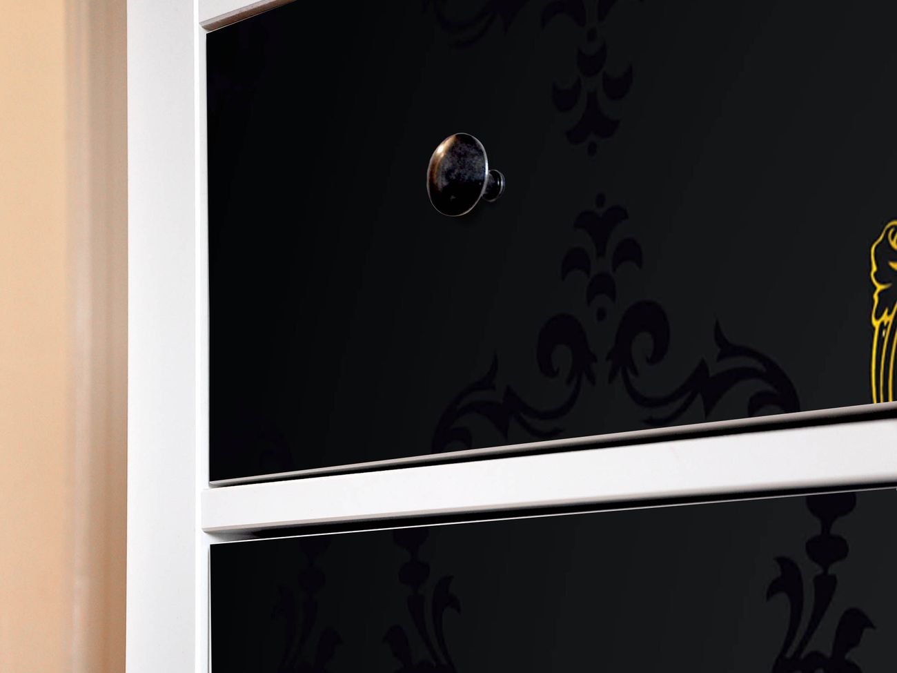 FUNKTION: Die banjado Möbelfolie mit Motiv VIP zaubert im Handumdrehen aus Ihrer Ikea HEMNES Kommode ein individuell gestaltetes Unikat. Verziert mit einem traumhaften Motiv verbindet die HEMNES Kommode jede Menge Stauraum mit ansprechendem Design. Die gezeigte IKEA HEMNES Komode ist nicht im Angebot enthalten. DESIGN: Die banjado Klebefolie gestaltet Ihr Ikea Möbelstück völlig neu. So passt sich die HEMNESKommode verschiedenen Einrichtungsstilen an. Lassen Sie Ihrer Kreativität freien Raum, wir helfen Ihnen bei der Umsetzung. DETAILS: Der banjado VIP Möbelsticker ist selbstklebend und wird Ihnen bereits fertig zugeschnitten geliefert. Sie können Schritt für Schritt jede Schublade einzeln bekleben, eine detaillierte Verklebeanleitung liegt selbstverständlich bei. Die Folie ist mit einem zusätzlichen Laminat überzogen, dass Ihr Möbelstück zusätzlich vor Kratzern schützt. NUTZEN: Sie können die banjado Möbelfolie wunderbar nutzen, um abgeplatzte, schmutzige oder unschöne Stellen an Ihrer Malm Kommode zu überdecken. Mit einem wechselnden Design können Sie Ihren Einrichtungsstil ändern oder aus einer Kinderkommode eine Flurkommode gestalten. Alle verwendeten Farben sind lösungsmittelfrei. BANJADO: Ihre Design Folie wird in Sachsen in einer kleinen Manufaktur angefertigt und verpackt. Wir legen großen Wert auf die Verbindung von Funktionalität und Design.