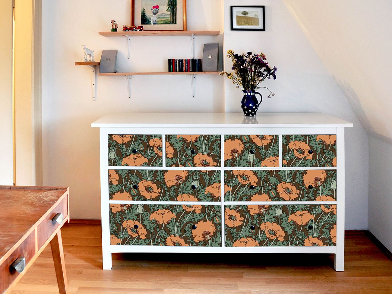 Möbelsticker für Ikea HEMNES Motiv Zeichnung Mohn