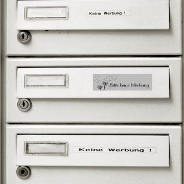 KEINE WERBUNG Aufkleber für Briefkästen Nummer SKW18 Sie haben ständig einen überfüllten Briefkasten und definitiv keine Lust mehr auf Werbung? Sie wollen einen lustigen und gleichzeitig einzigartigen Aufkleber für Ihren Briefkasten? Dann sind die Keine-Werbung-Aufkleber von banjado genau das Richtige für Sie. Geben Sie Ihre Nachricht an Ihren Zusteller vor Ort weiter und verpassen Sie ihm ein Lächeln mit auf den Weg. Mit unserem Keine-Werbung-Aufkleber setzten Sie definitiv ein Zeichen und stechen bei Ihren Nachbarn hervor. Bei der Herstellung achten wir auf höchste Qualität. Immerhin sollen Sie lange Freude an Ihrem Aufkleber haben. Deshalb arbeiten wir mit UV- und wetterbeständiger Dekorfolie, die zum Schutz noch einmal mit einem speziellen Schutzlaminat überzogen wird. So ist Ihr Aufkleber nicht nur vor dem Wetter, sondern auch vor Kratzern und anderen Beschädigungen geschützt. Der Aufkleber kann beim Reinigen mit handelsüblichen Reinigungsmitteln gerne ein wenig Wasser abbekommen. Das Anbringen an Ihrem Briefkasten ist ebenfalls sehr einfach: Oberfläche des Briefkastens reinigen, einfach abziehen und an eine gut sichtbare Stelle kleben. So erhalten Sie sicherlich keine unerwünschte Werbung mehr.
