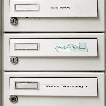 KEINE WERBUNG Aufkleber für Briefkästen Nummer SKW86 Sie haben ständig einen überfüllten Briefkasten und definitiv keine Lust mehr auf Werbung? Sie wollen einen lustigen und gleichzeitig einzigartigen Aufkleber für Ihren Briefkasten? Dann sind die Keine-Werbung-Aufkleber von banjado genau das Richtige für Sie. Geben Sie Ihre Nachricht an Ihren Zusteller vor Ort weiter und verpassen Sie ihm ein Lächeln mit auf den Weg. Mit unserem Keine-Werbung-Aufkleber setzten Sie definitiv ein Zeichen und stechen bei Ihren Nachbarn hervor. Bei der Herstellung achten wir auf höchste Qualität. Immerhin sollen Sie lange Freude an Ihrem Aufkleber haben. Deshalb arbeiten wir mit UV- und wetterbeständiger Dekorfolie, die zum Schutz noch einmal mit einem speziellen Schutzlaminat überzogen wird. So ist Ihr Aufkleber nicht nur vor dem Wetter, sondern auch vor Kratzern und anderen Beschädigungen geschützt. Der Aufkleber kann beim Reinigen mit handelsüblichen Reinigungsmitteln gerne ein wenig Wasser abbekommen. Das Anbringen an Ihrem Briefkasten ist ebenfalls sehr einfach: Oberfläche des Briefkastens reinigen, einfach abziehen und an eine gut sichtbare Stelle kleben. So erhalten Sie sicherlich keine unerwünschte Werbung mehr.