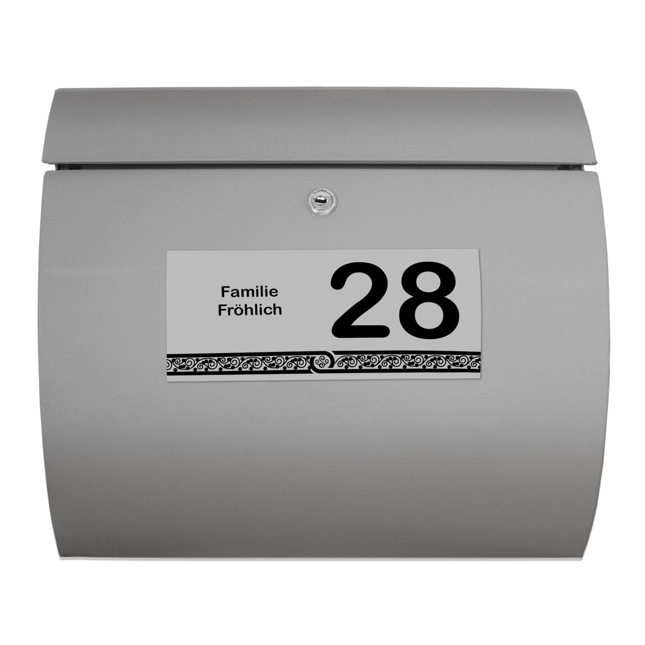 Briefkasten Selbstklebendes Namensschild grau-schwarz mit Ornament