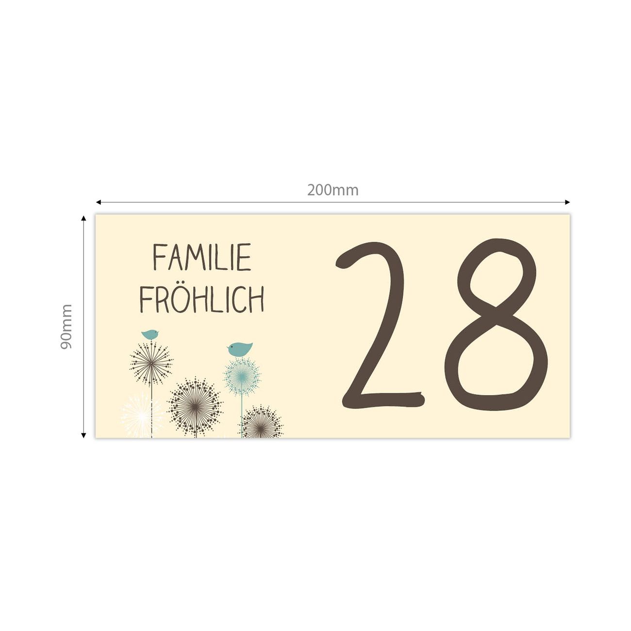 Der Aufkleber ist sofort online personalisierbar. Bitte hinterlassen den gewünschten Text im Textfeld IHR PERSÖNLICHER WUNSCHTEXT und Ihre Hausnummer im Feld IHRE PERSÖNLICHE HAUSNUMMER. Die Schriftart und Schriftfarbe wird wie in unserem Beispielbild umgesetzt. Beachten Sie dass sich bei einem zu langen Text Schriftgröße verkleinert.