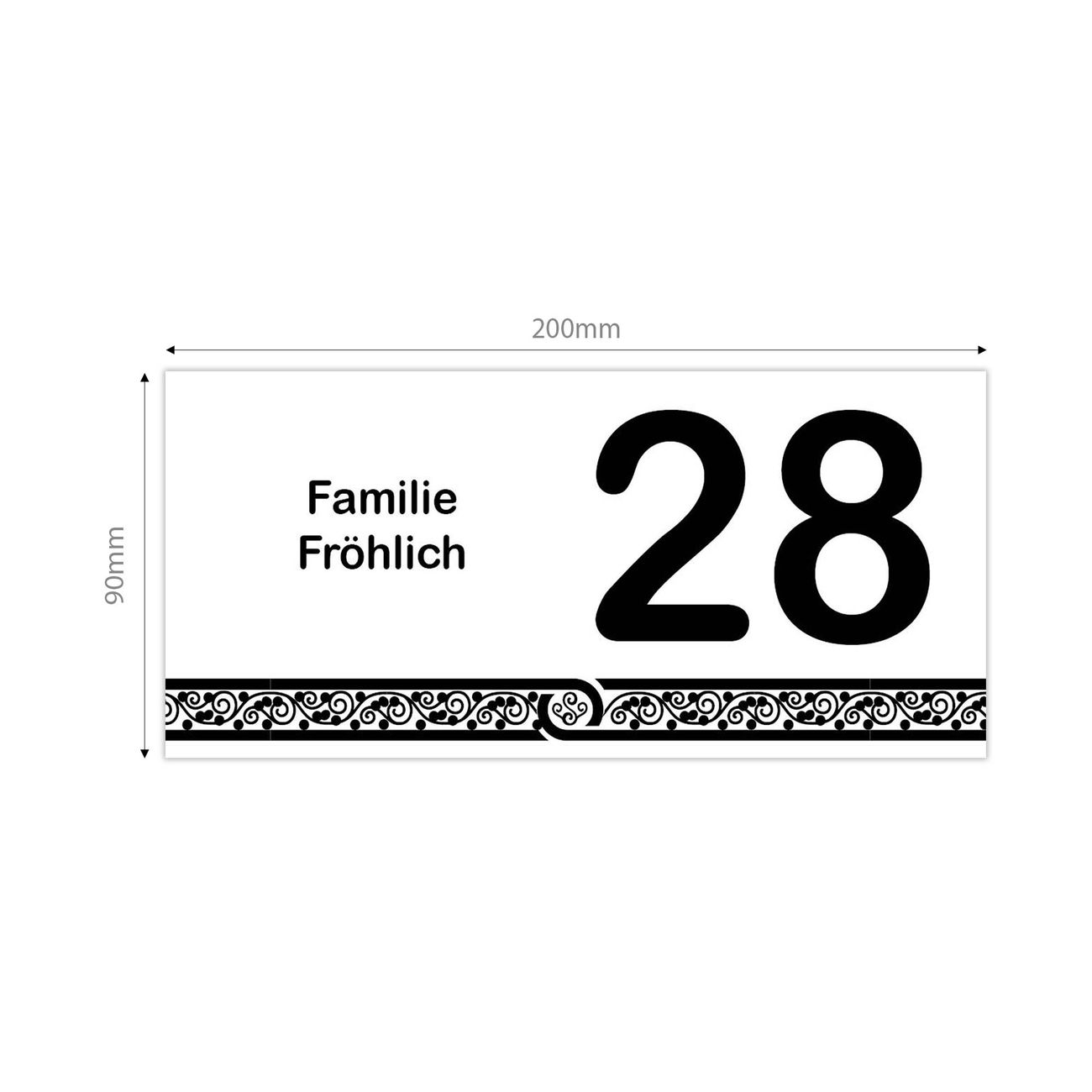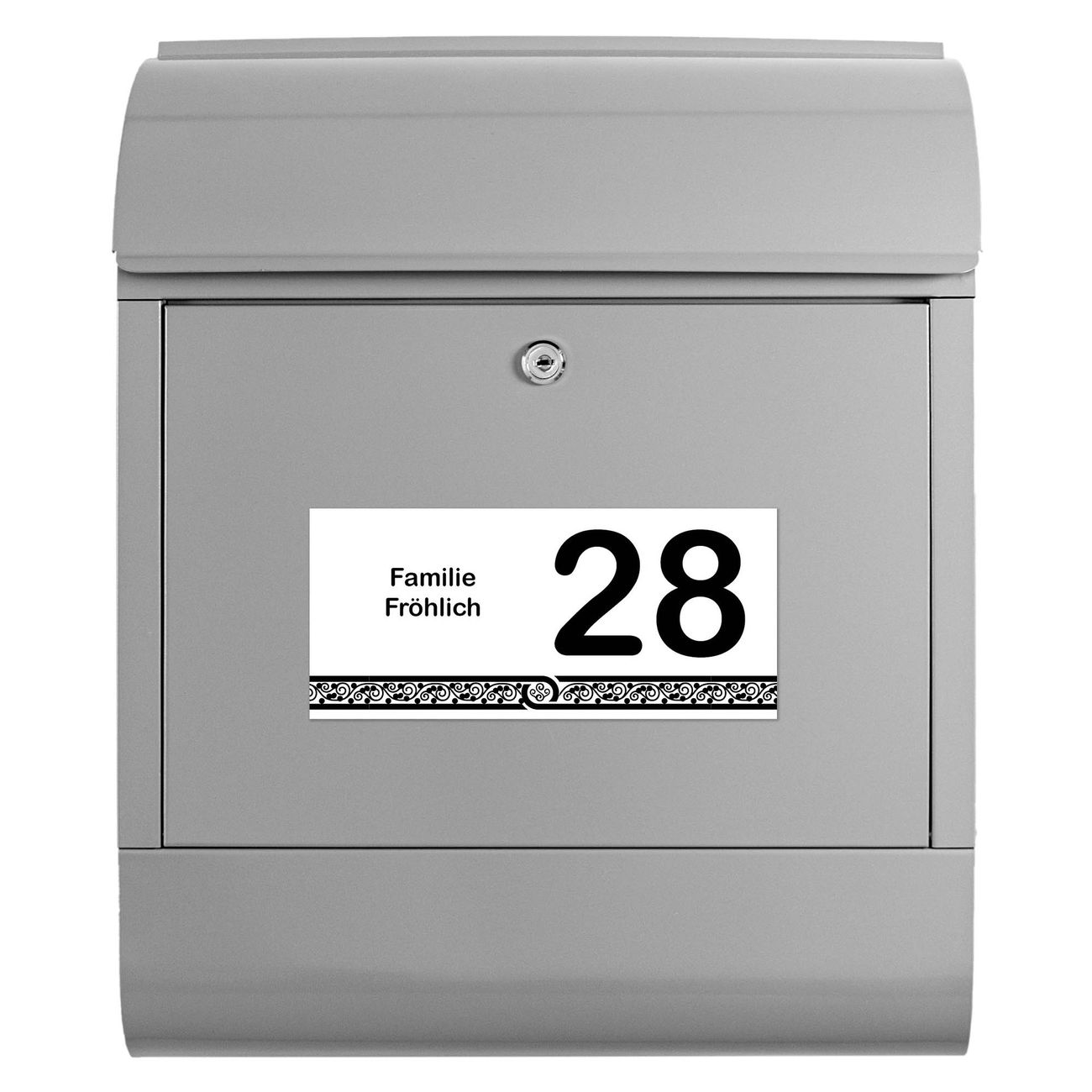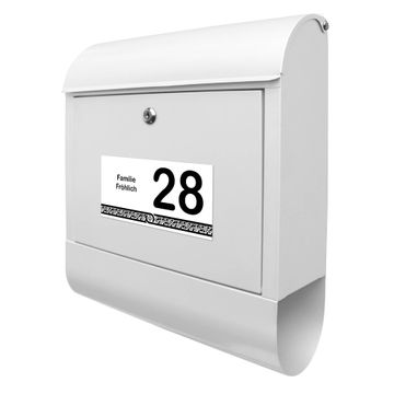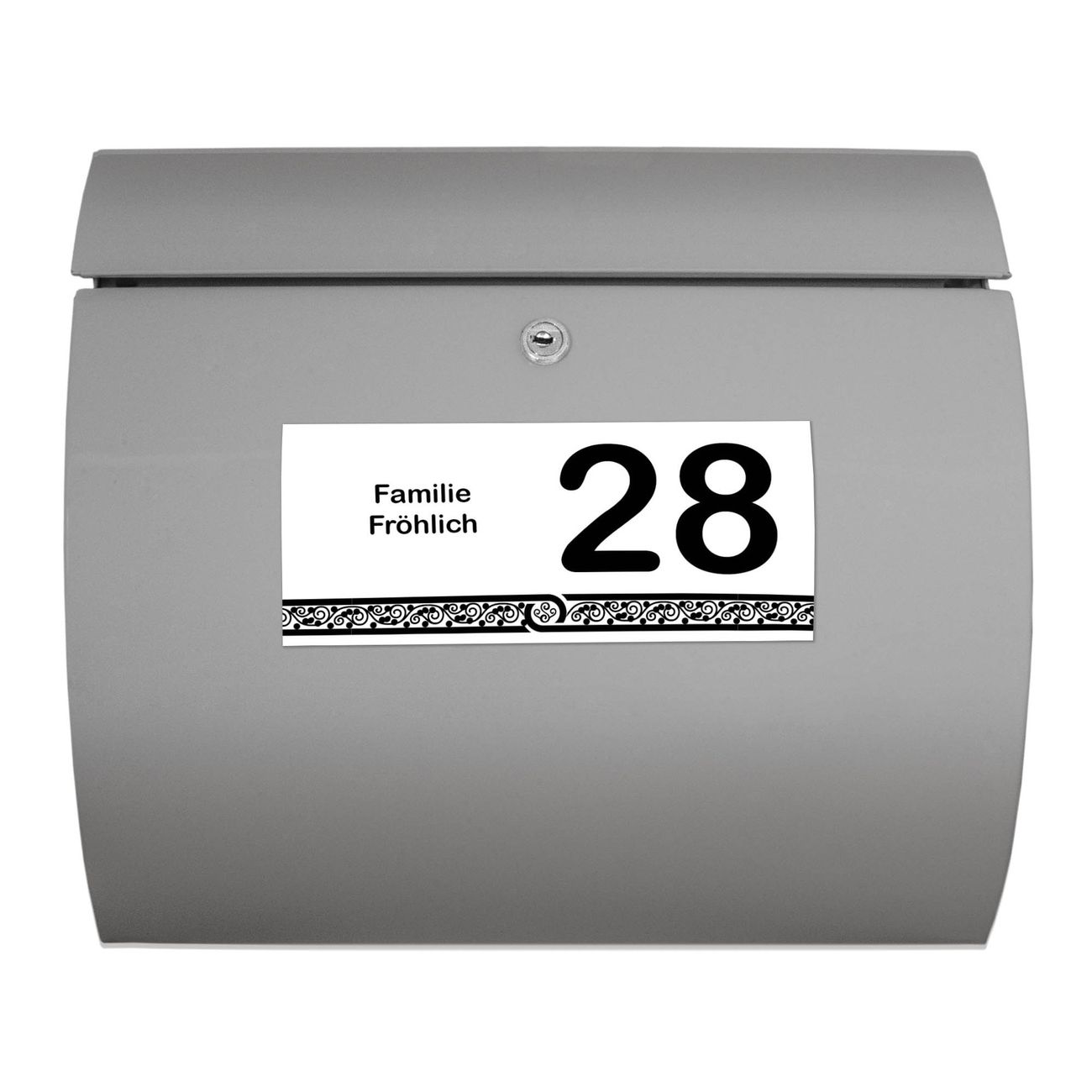 Briefkasten Selbstklebendes Namensschild weiß-schwarz mit Ornament