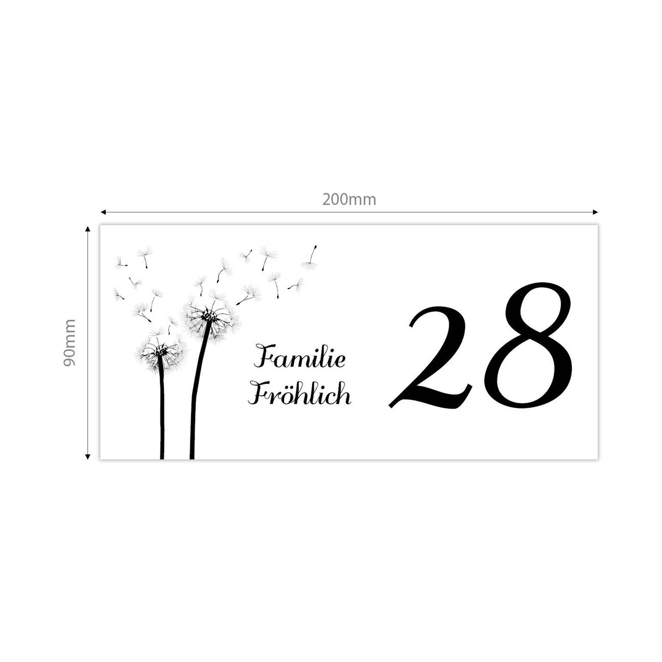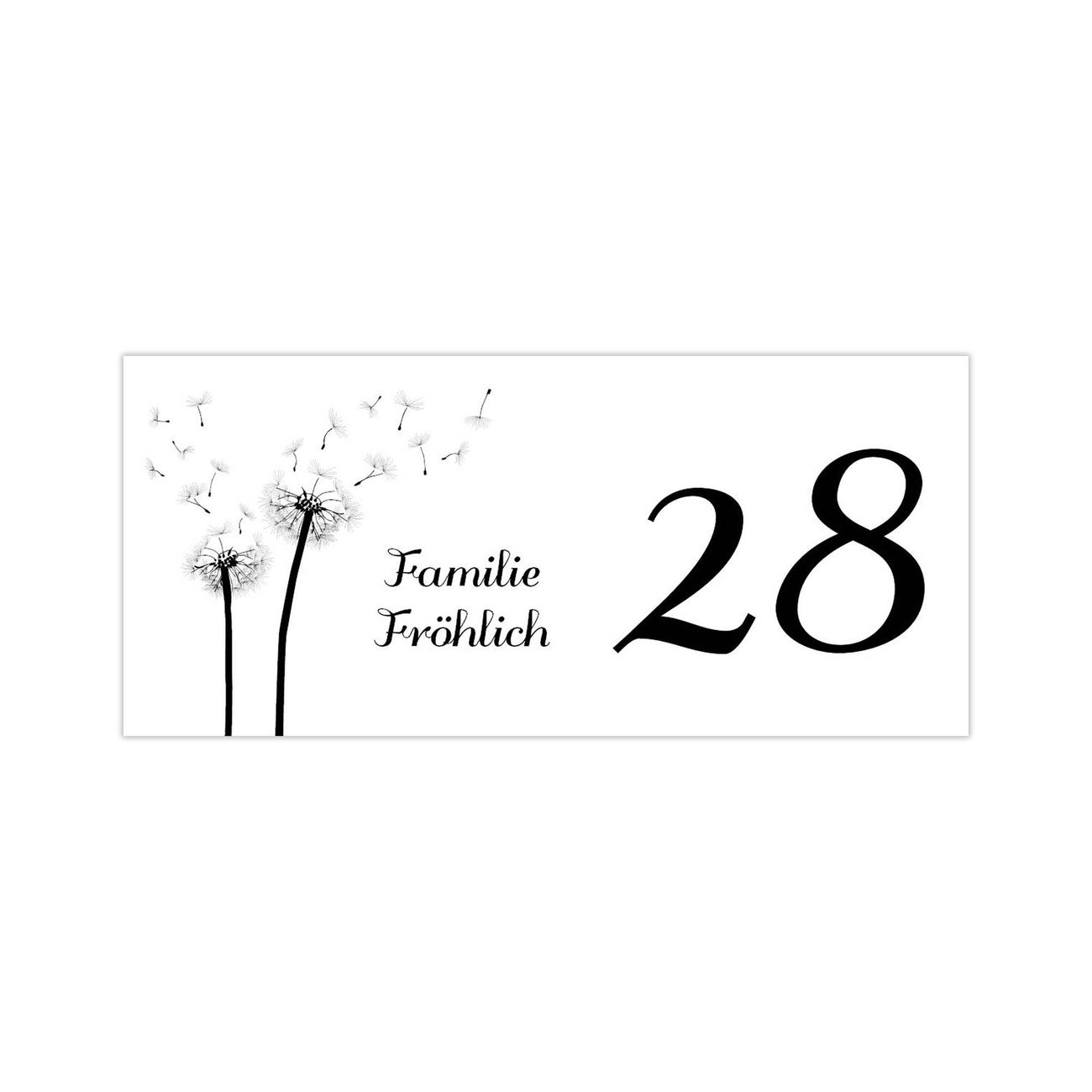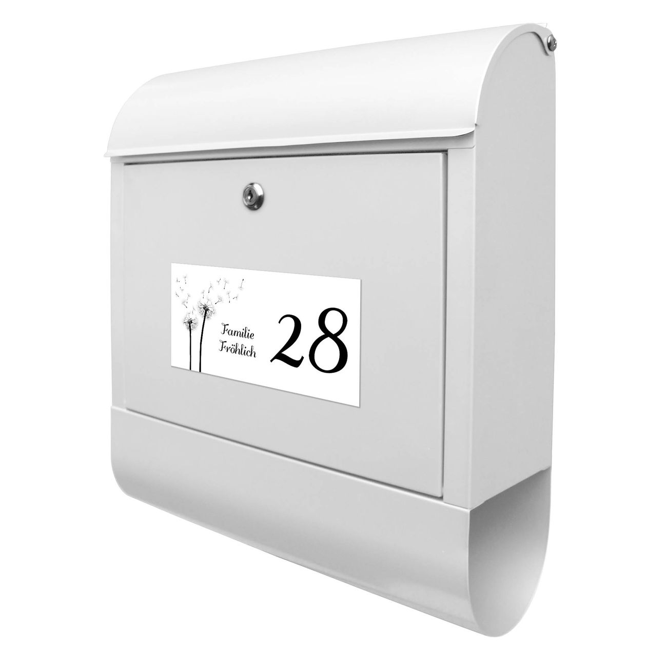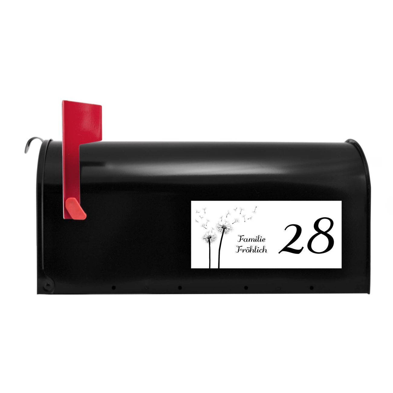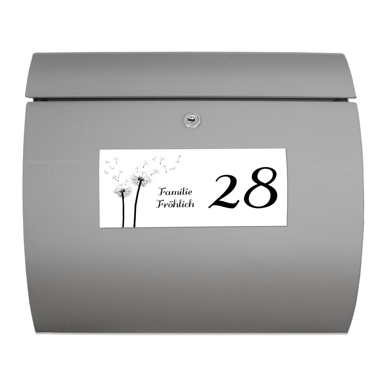 Briefkasten Selbstklebendes Namensschild weiß-schwarz Pusteblume