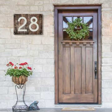 Hausnummernschild Edelstahl personalisierbar Altes Holz