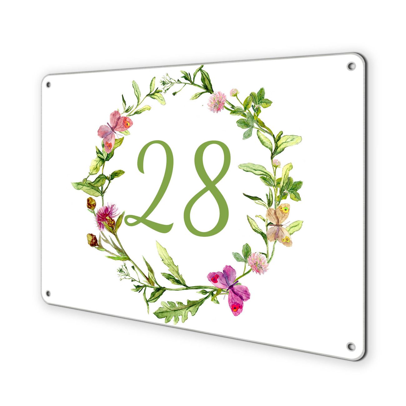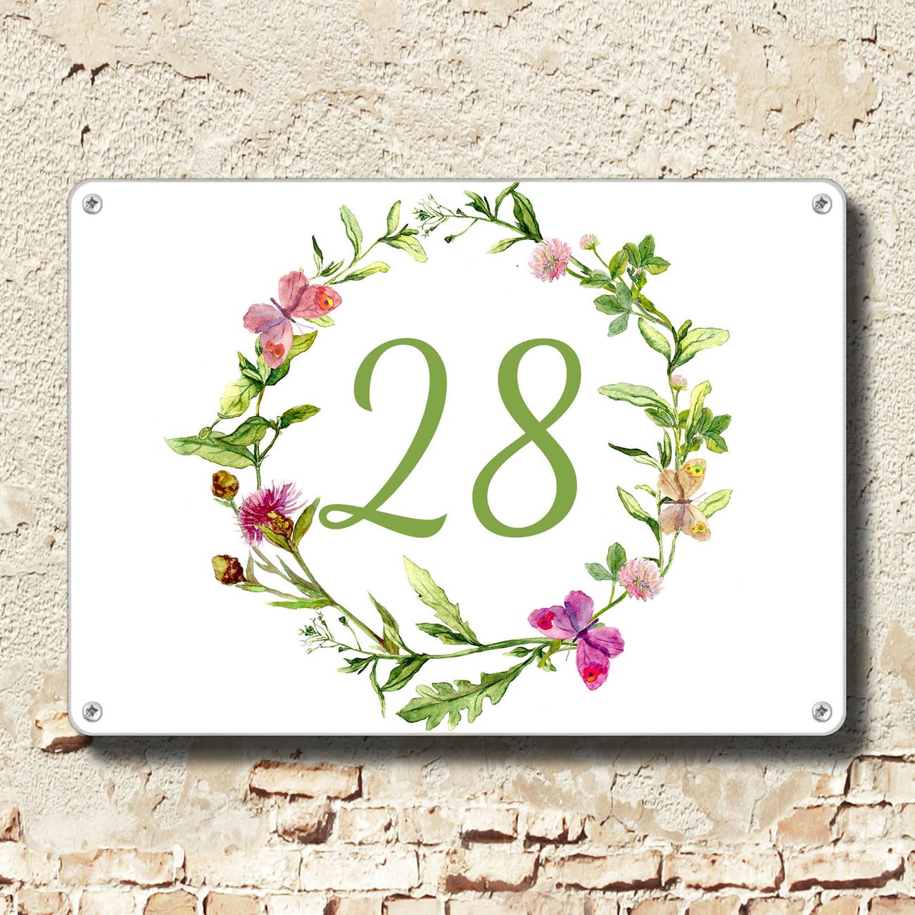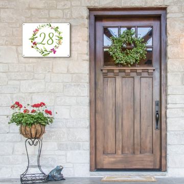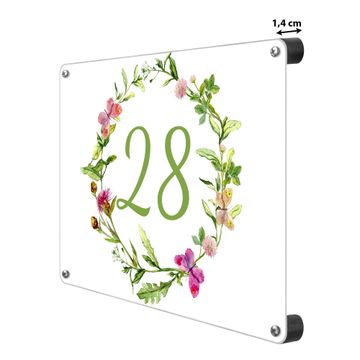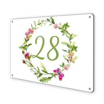 Hausnummernschild Edelstahl personalisierbar Aquarell Blumenring