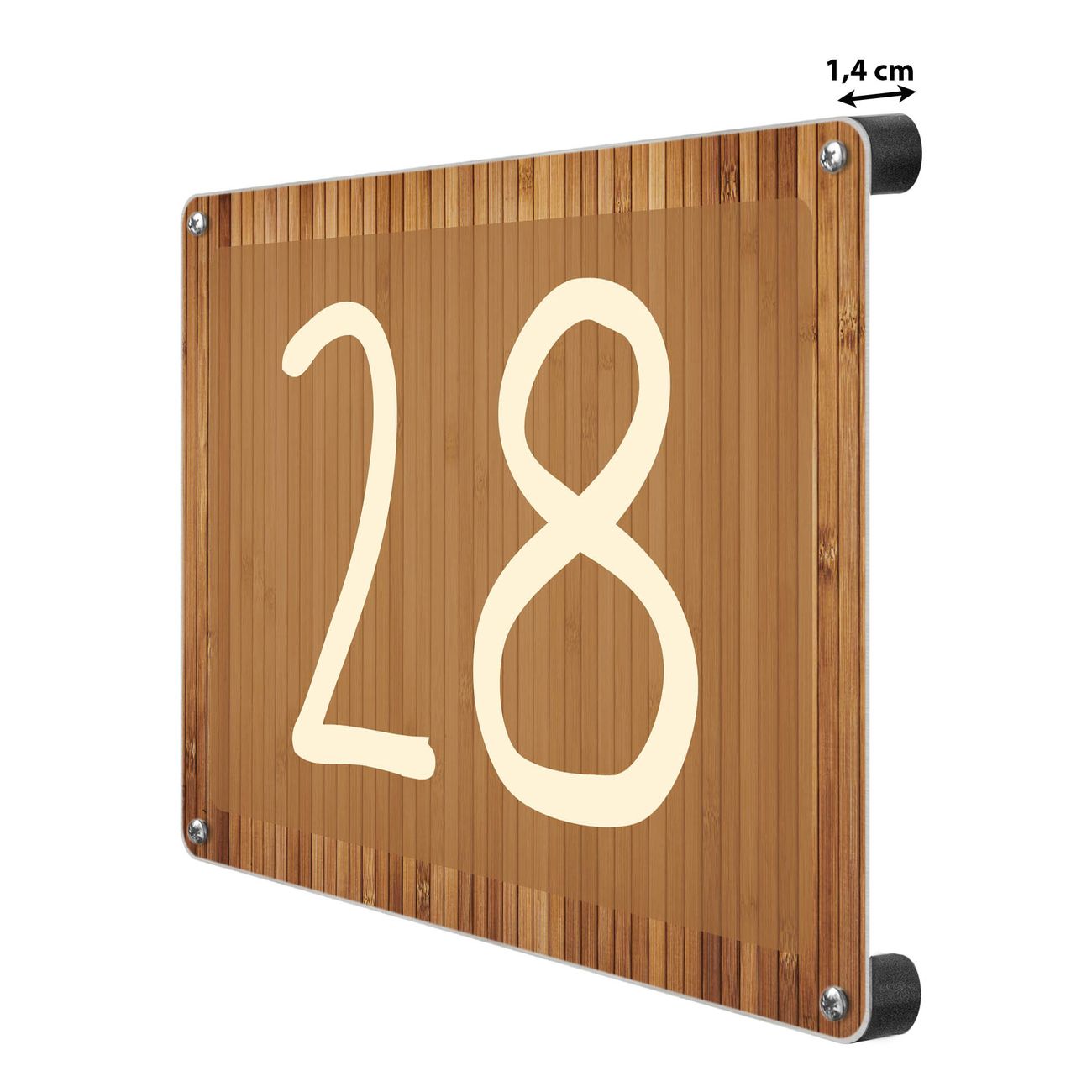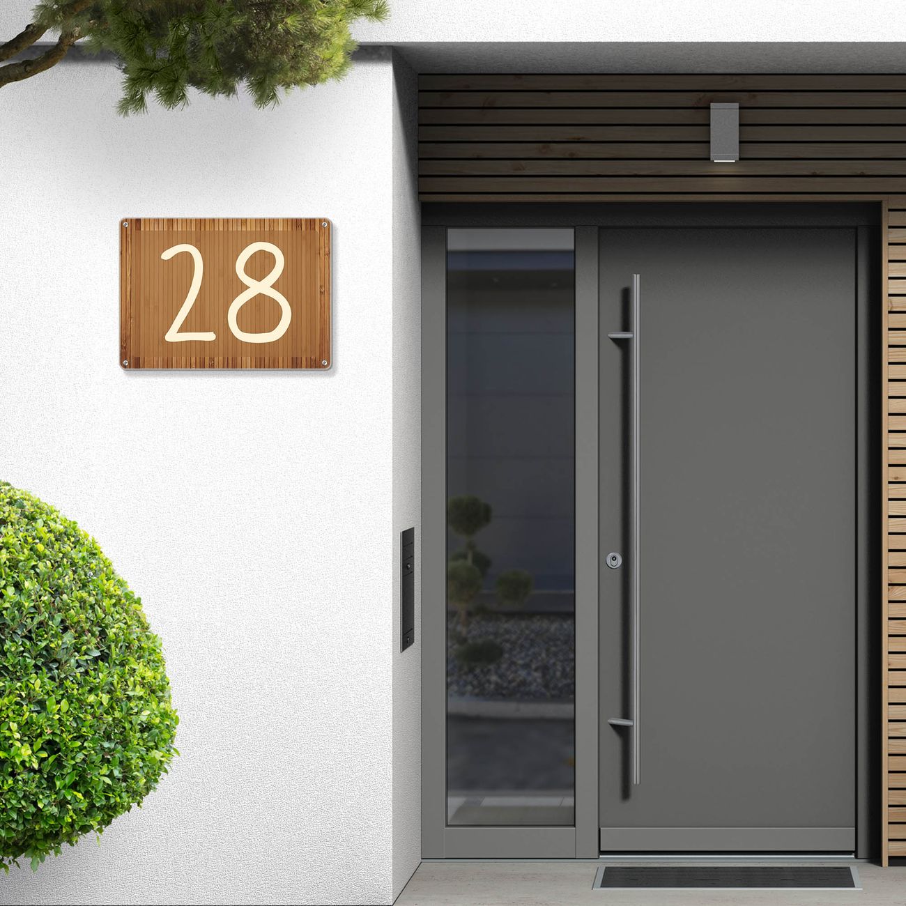 Hausnummernschild Edelstahl personalisierbar Bambusholz