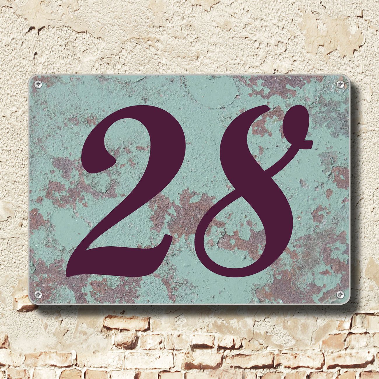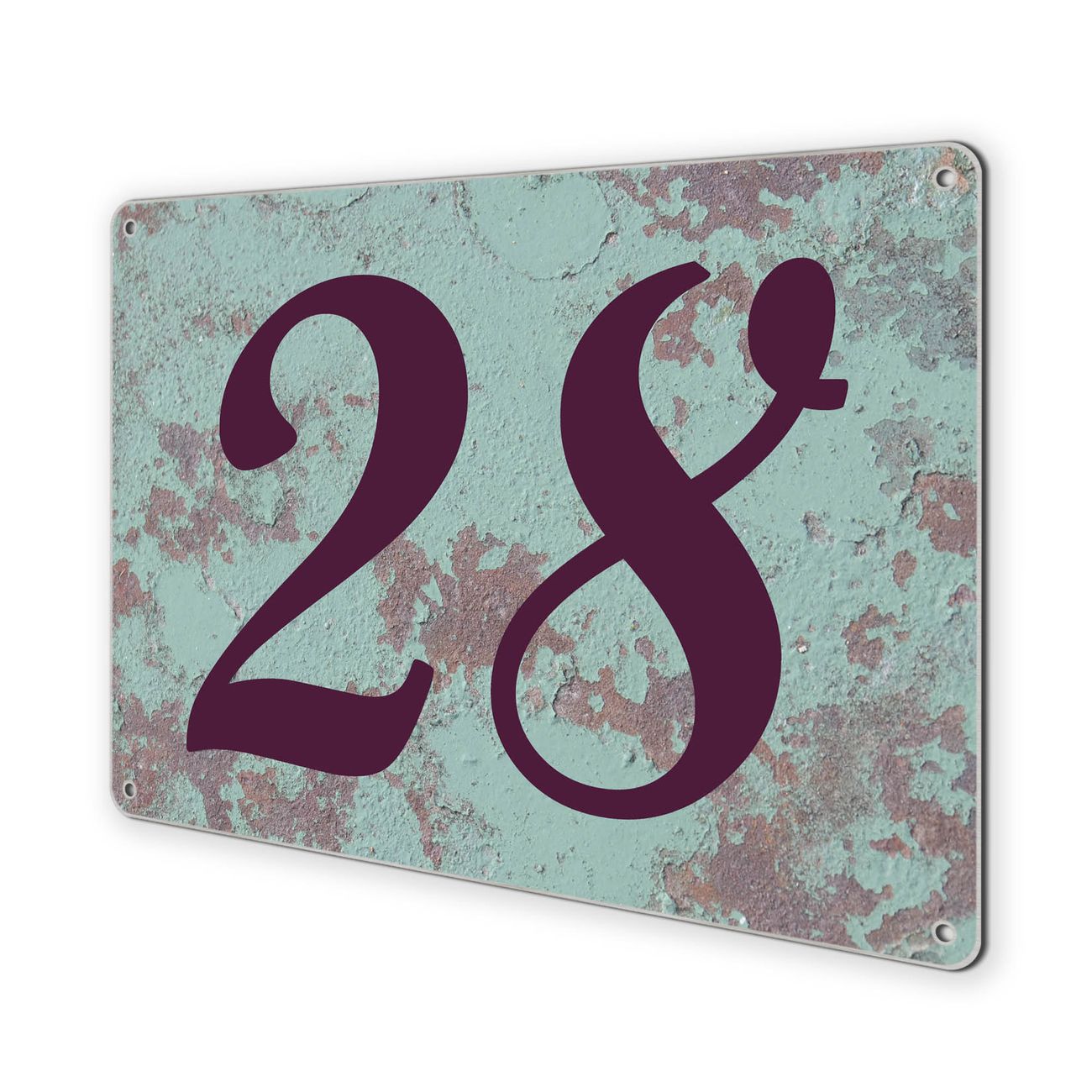 Hausnummernschild Edelstahl personalisierbar Blaue Struktur