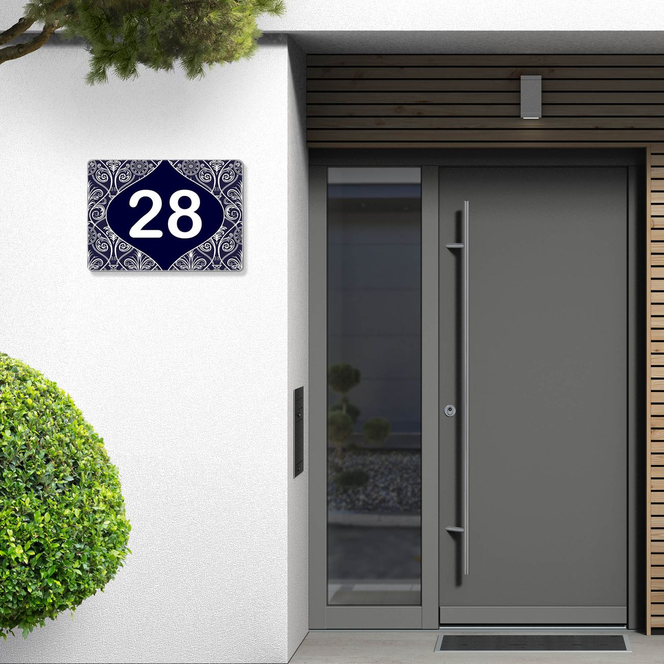 Das banjado Hausnummer Schild ist mit 4 Schrauben einfach am Haus anzubringen und zeigt dank der Größe stilsicher Ihre Hausnummer oder auch individuell Hausnummer mit Straßennamen. Das Hausschild personalisiert können Sie ganz auf Ihre Wünsche anpassen. Wir bieten verschiedenste Motive an. Dazu können Sie das Schild mit Ihrer Hausnummer anpassen.