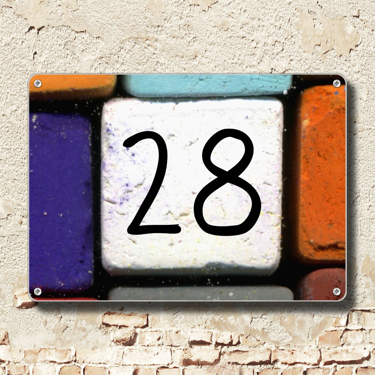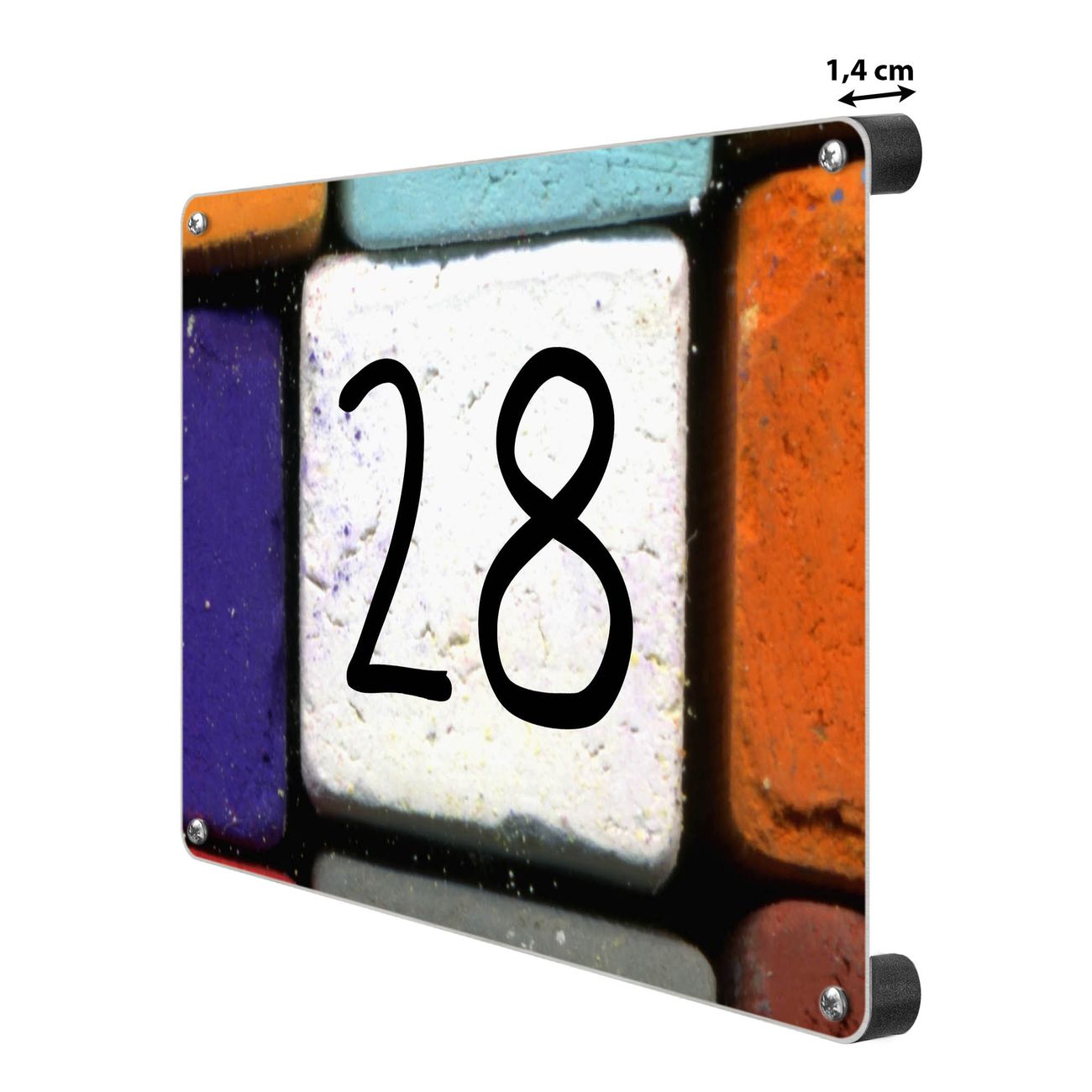 Hausnummernschild Edelstahl personalisierbar Bunte Kreide