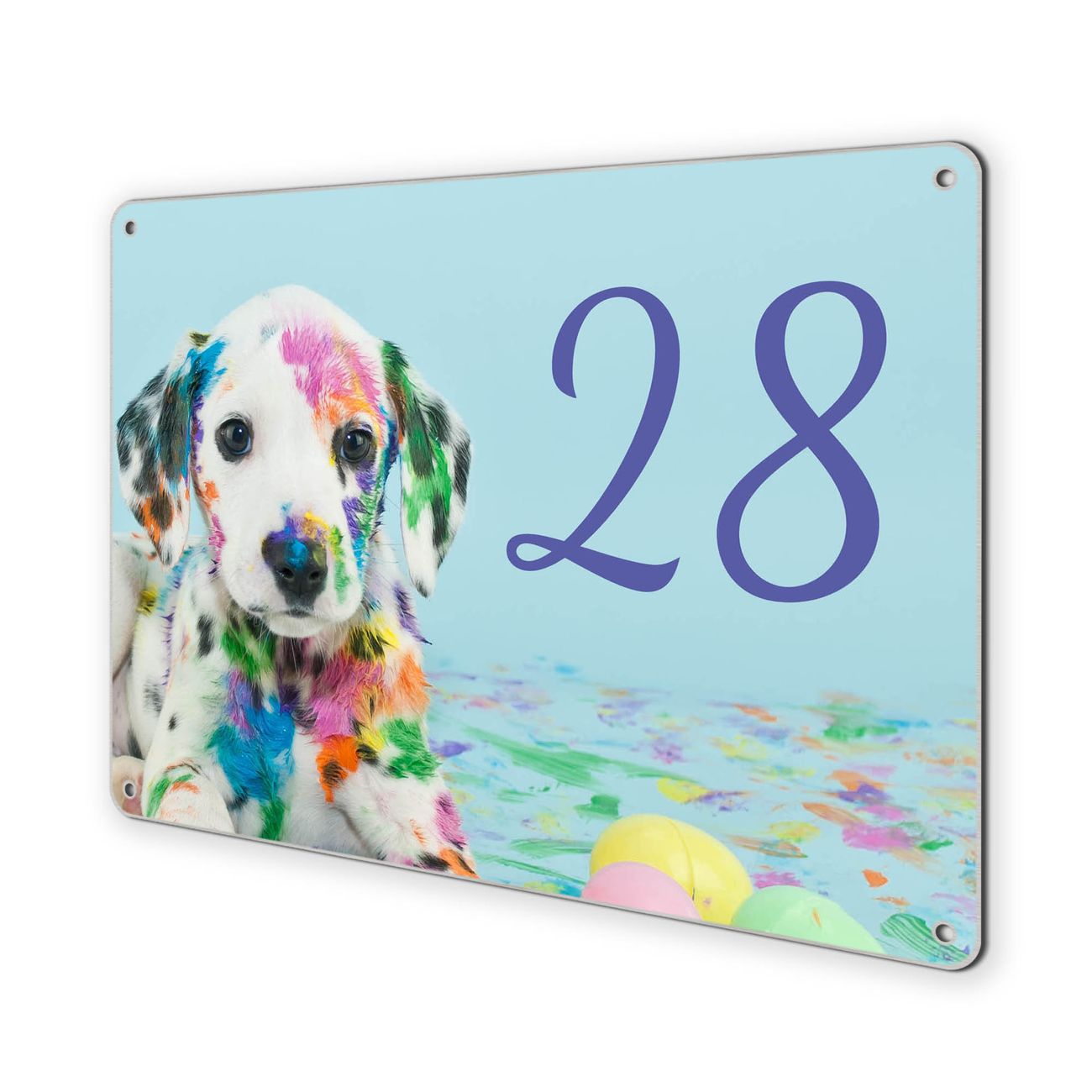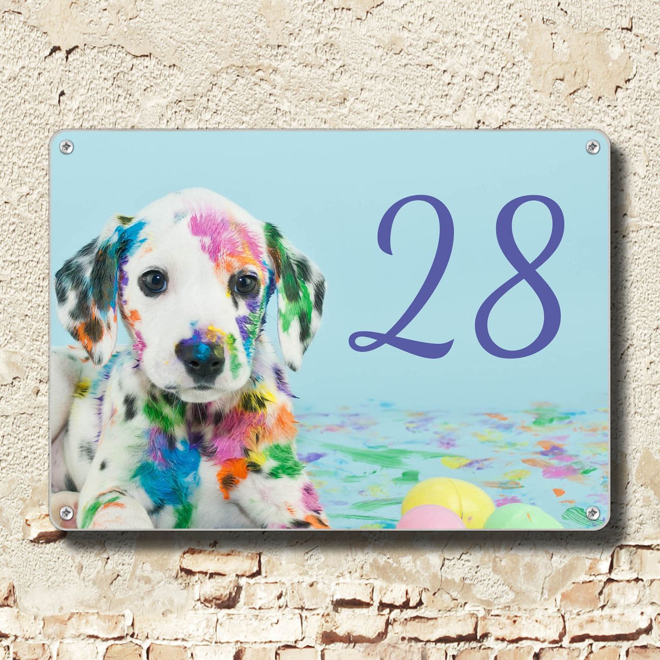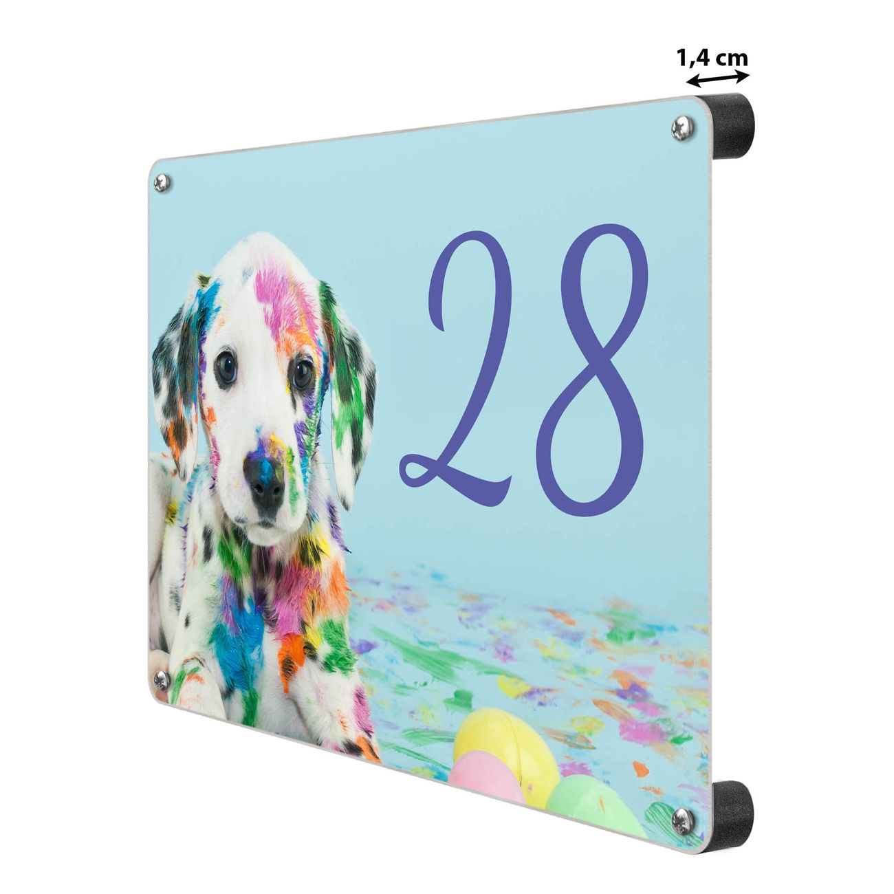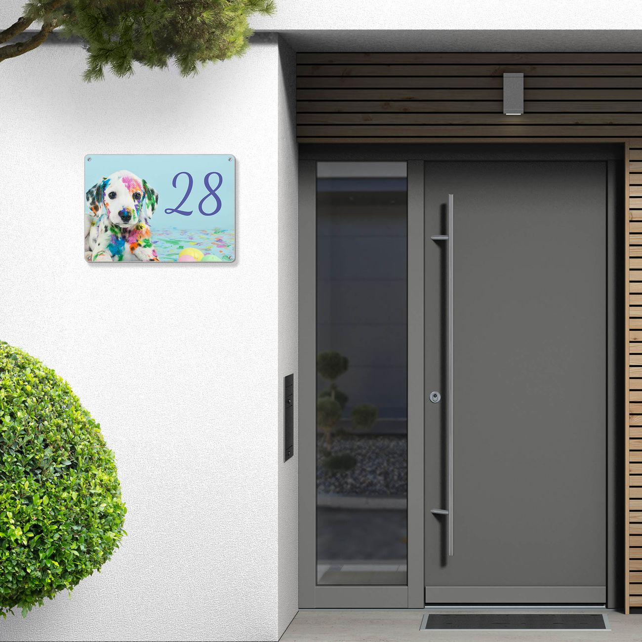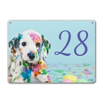 Hausnummernschild Edelstahl personalisierbar Bunter Dalmatiner