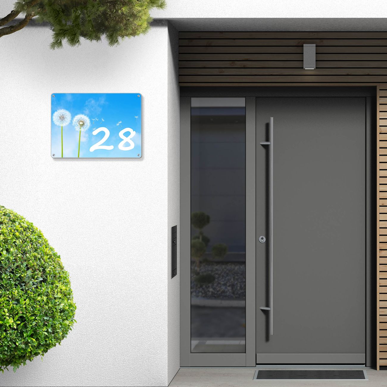 Hausnummernschild Edelstahl personalisierbar Dandelion