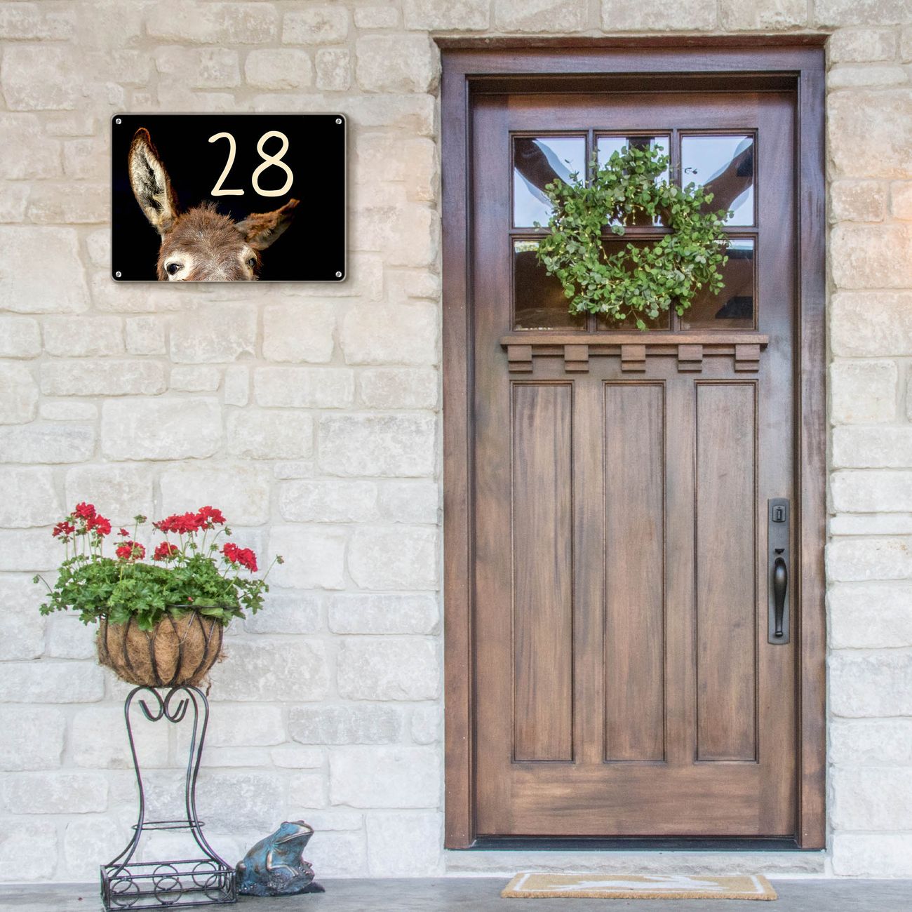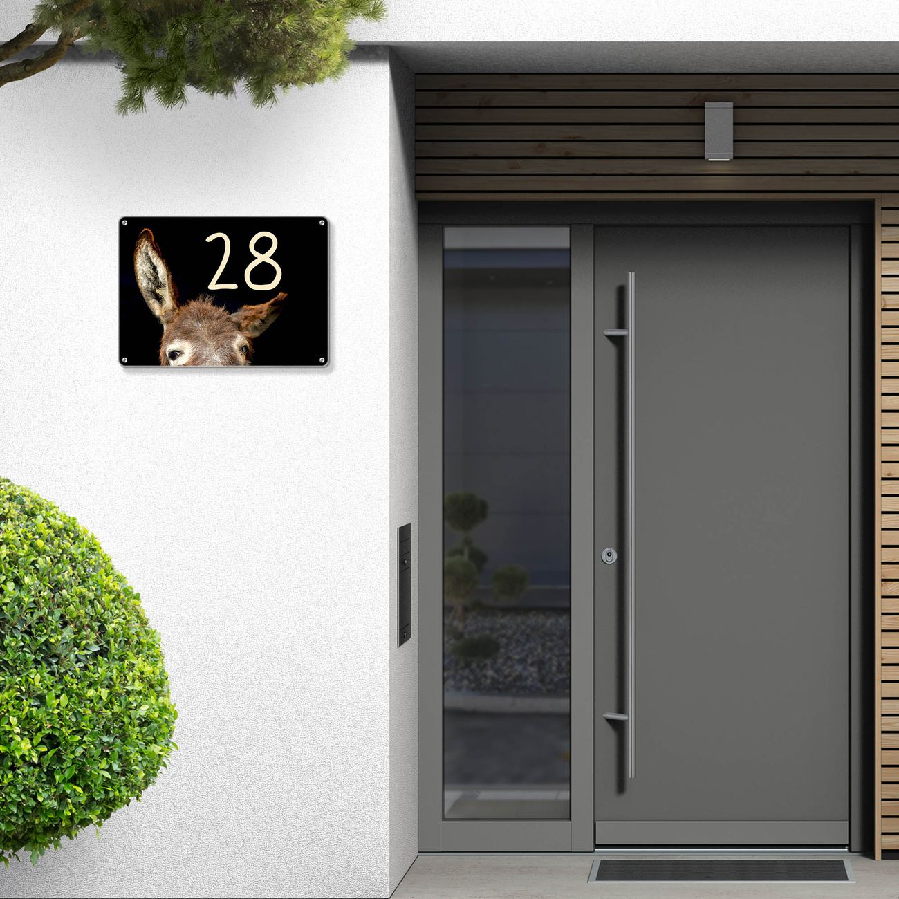 Hausnummernschild Edelstahl personalisierbar Esel