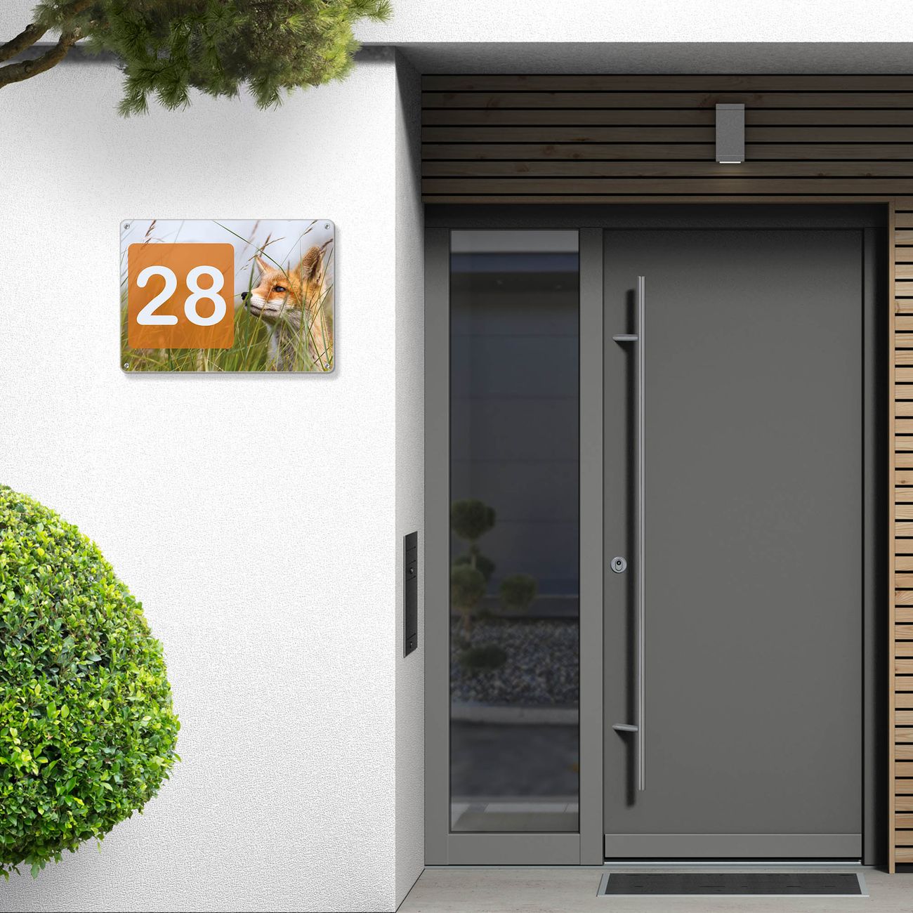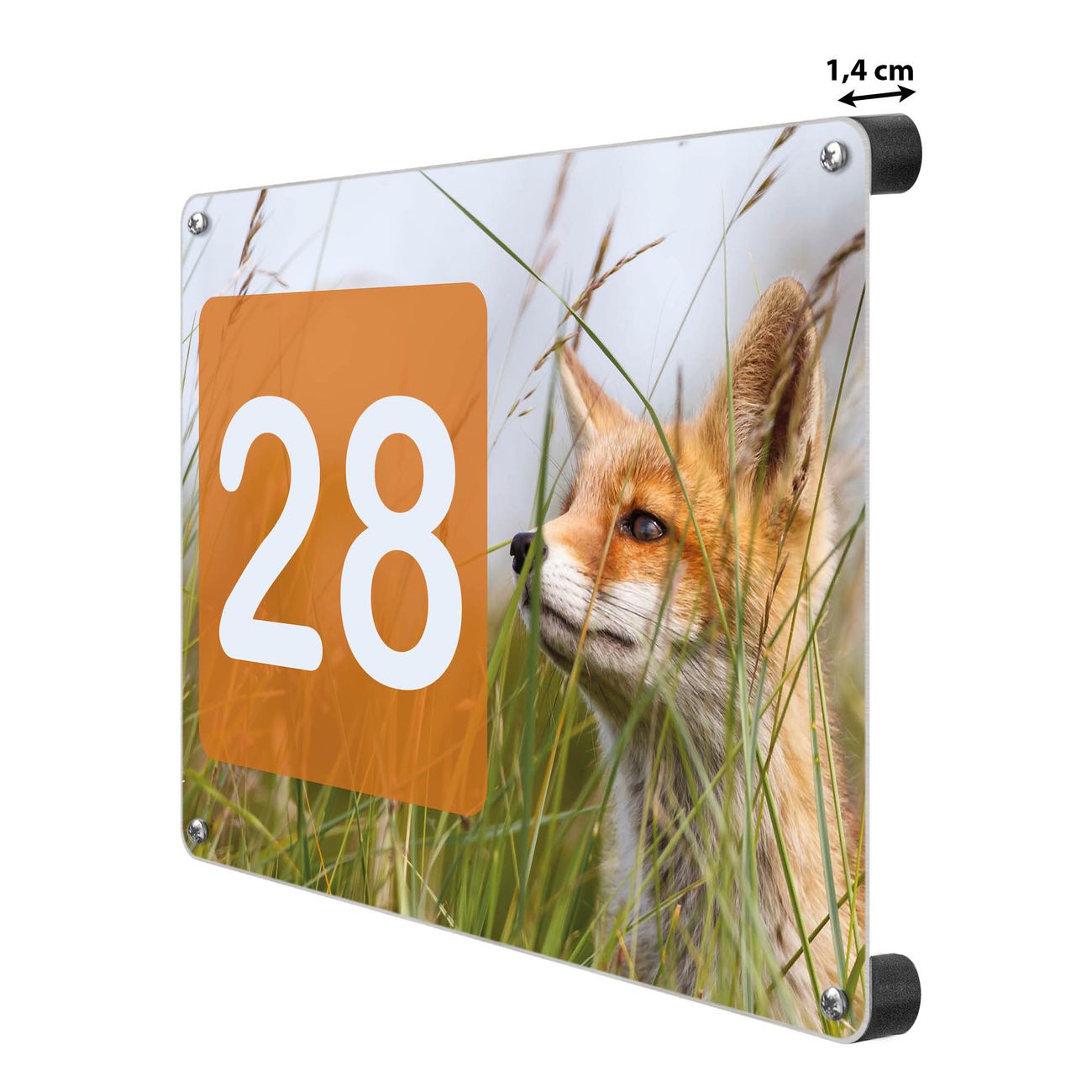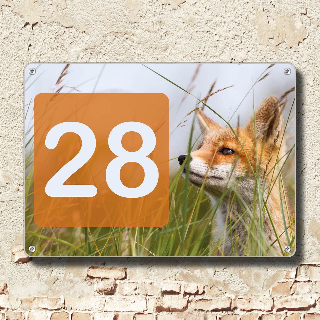 Hausnummernschild Edelstahl personalisierbar Fuchs